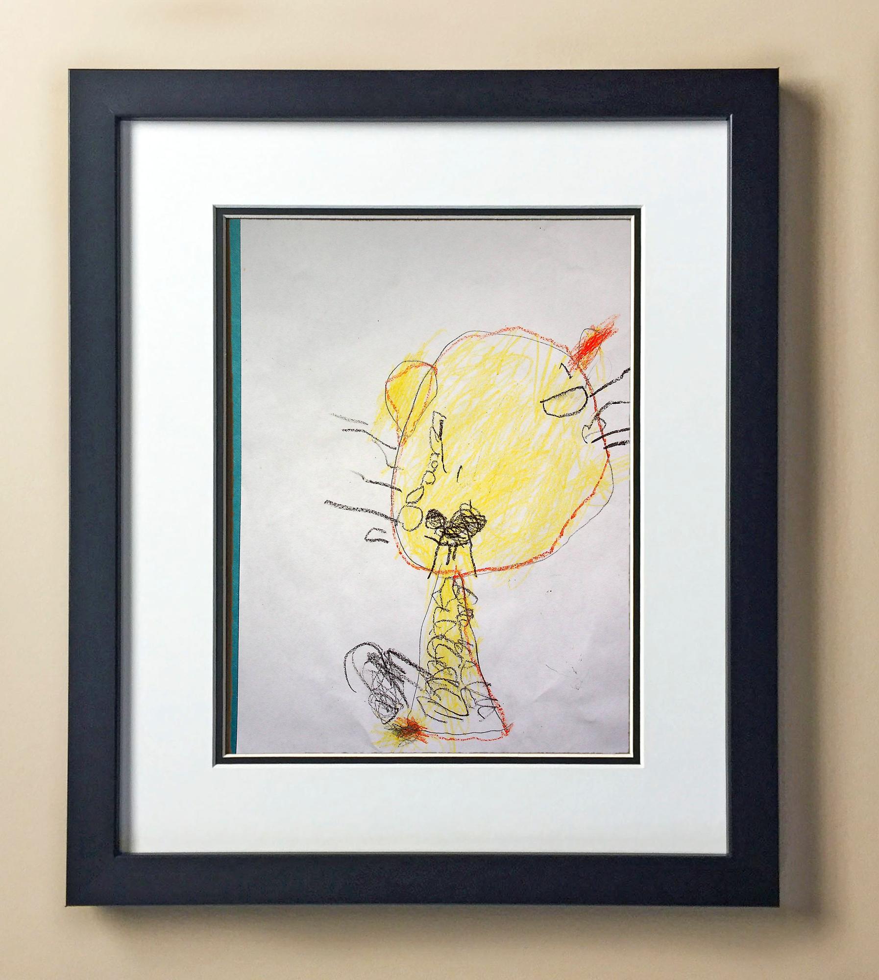 Included with the purchase is the Students Artwork, Frame, double matboard, shatter proof plexiglass, and a ready to hang backerboard with turnbuttons