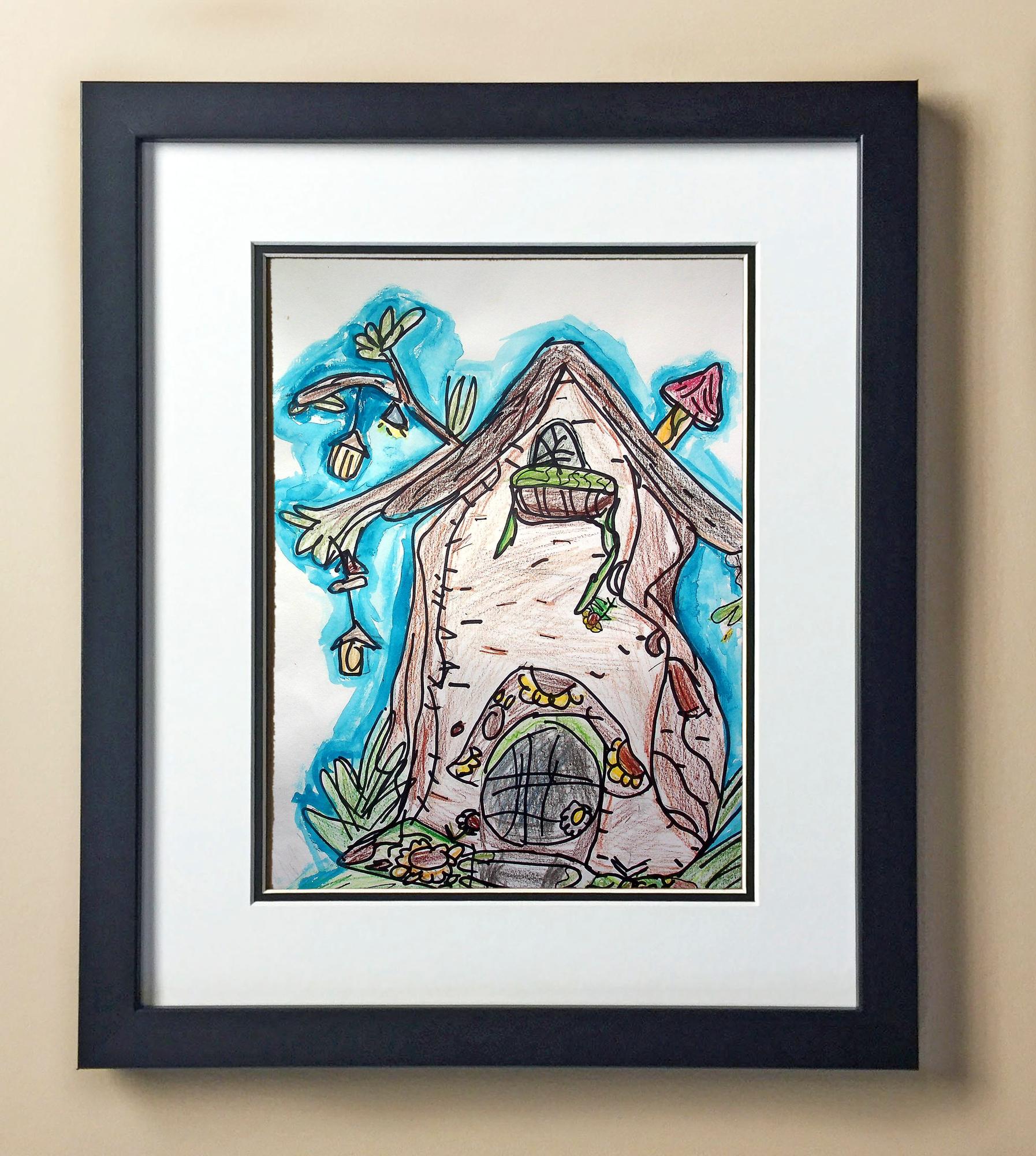 Included with the purchase is the Students Artwork, Frame, double matboard, shatter proof plexiglass, and a ready to hang backerboard with turnbuttons