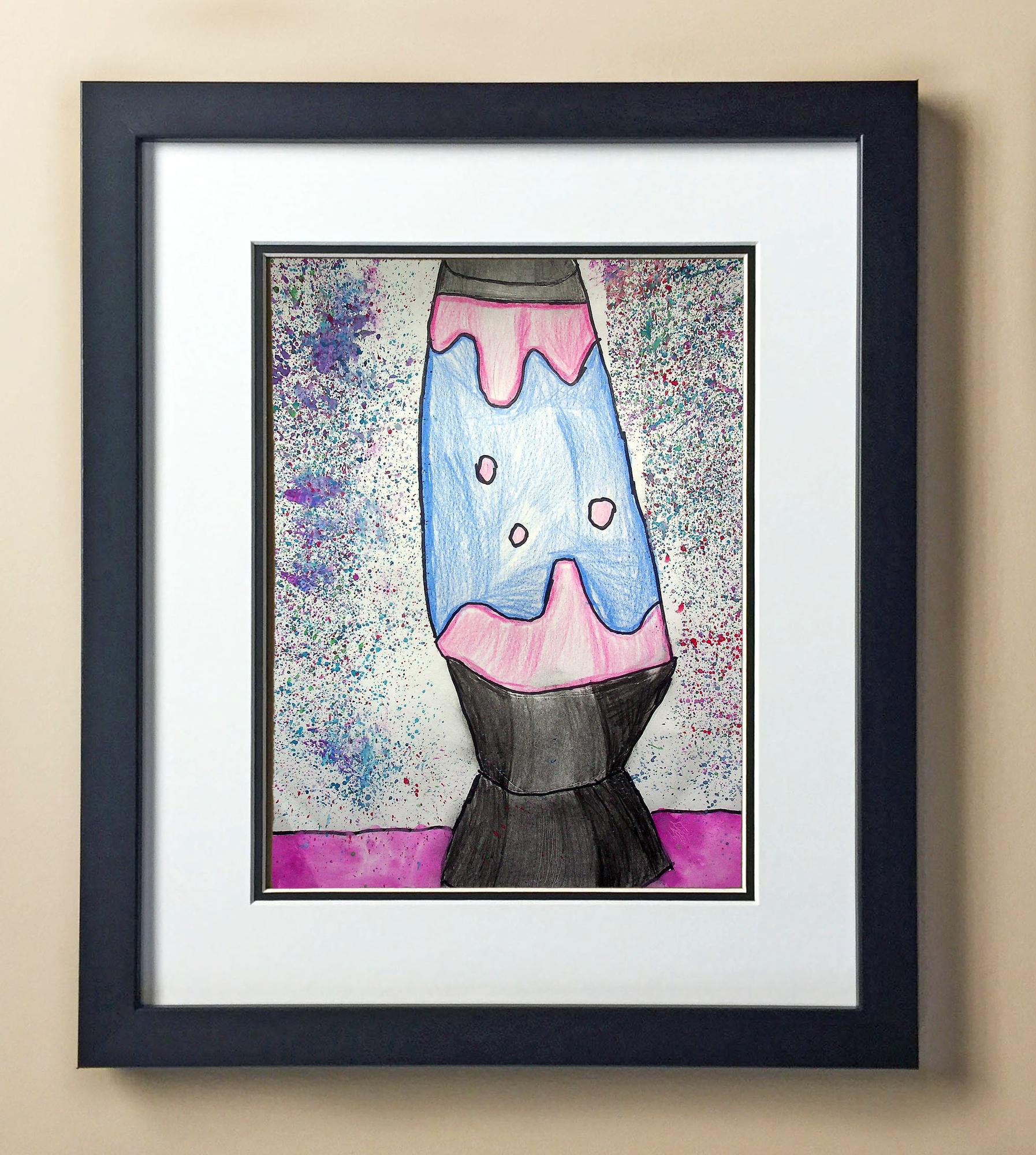 Included with the purchase is the Students Artwork, Frame, double matboard, shatter proof plexiglass, and a ready to hang backerboard with turnbuttons