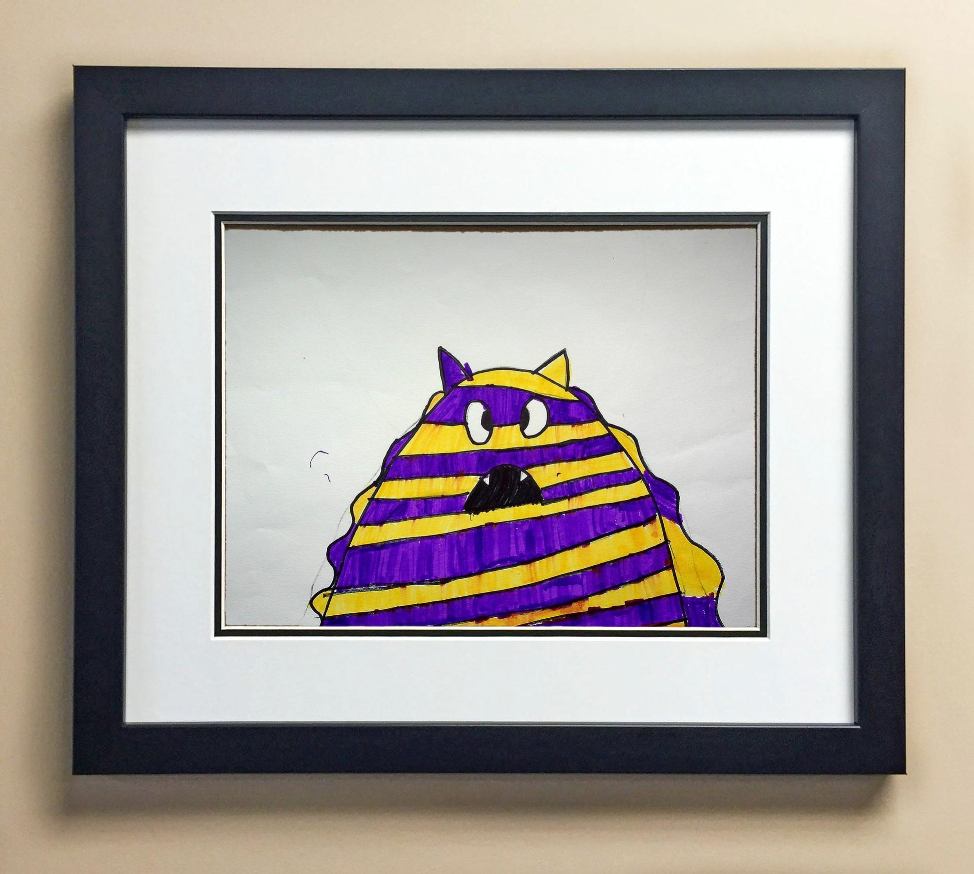 Included with the purchase is the Students Artwork, Frame, double matboard, shatter proof plexiglass, and a ready to hang backerboard with turnbuttons