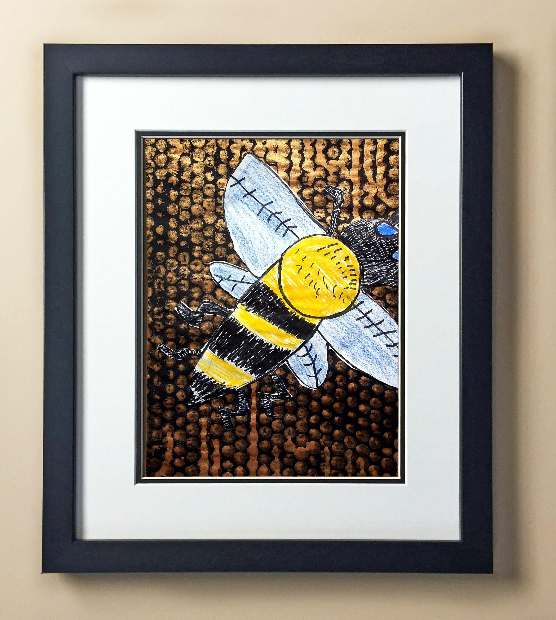 Included with the purchase is the Students Artwork, Frame, double matboard, shatter proof plexiglass, and a ready to hang backerboard with turnbuttons