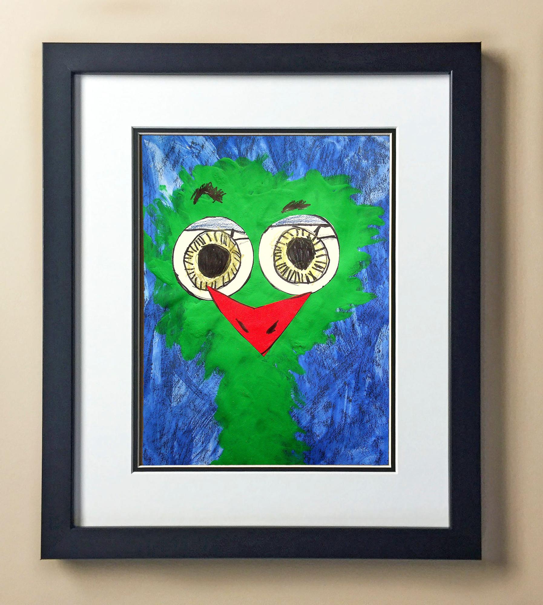 Included with the purchase is the Students Artwork, Frame, double matboard, shatter proof plexiglass, and a ready to hang backerboard with turnbuttons