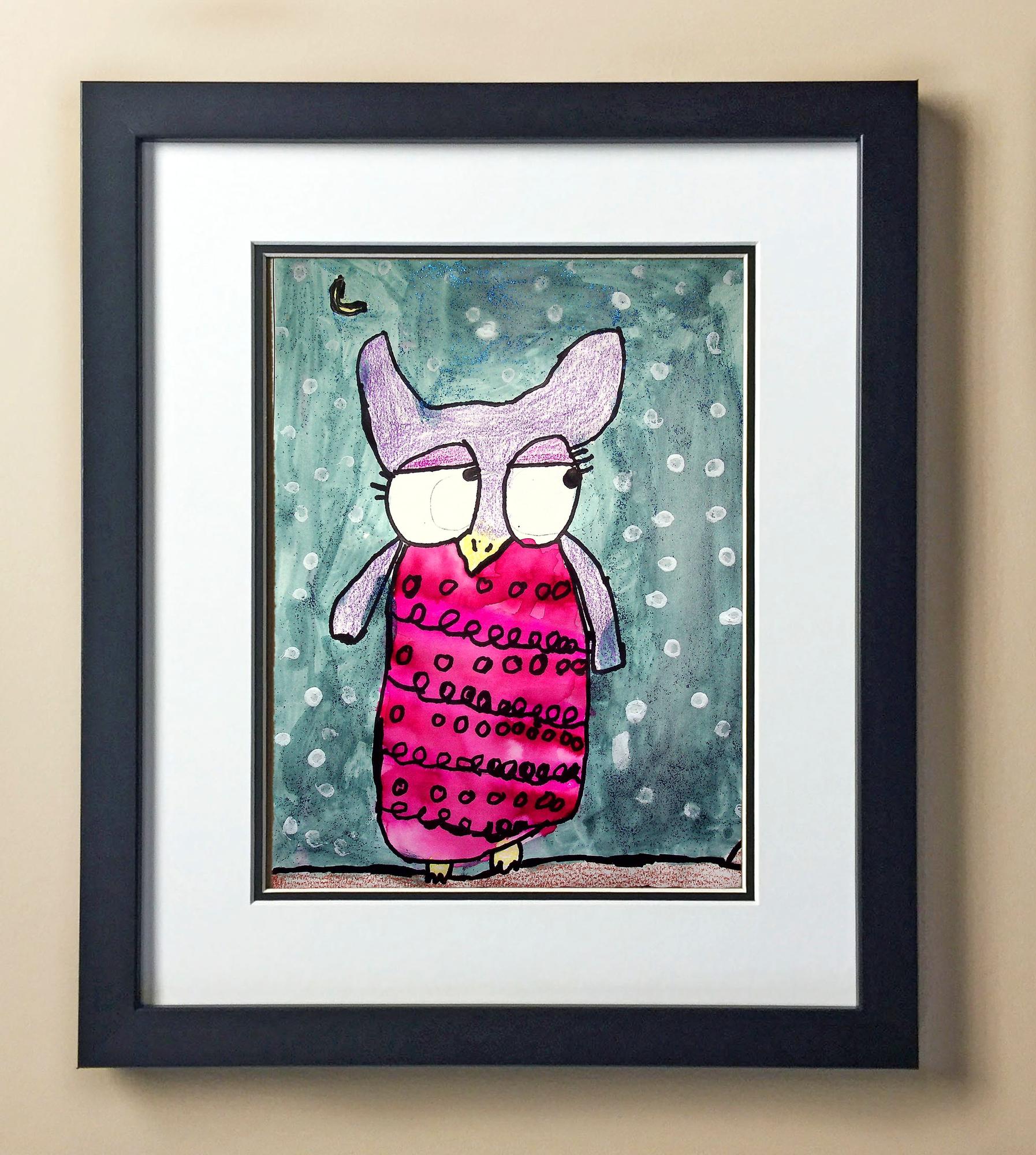 Included with the purchase is the Students Artwork, Frame, double matboard, shatter proof plexiglass, and a ready to hang backerboard with turnbuttons
