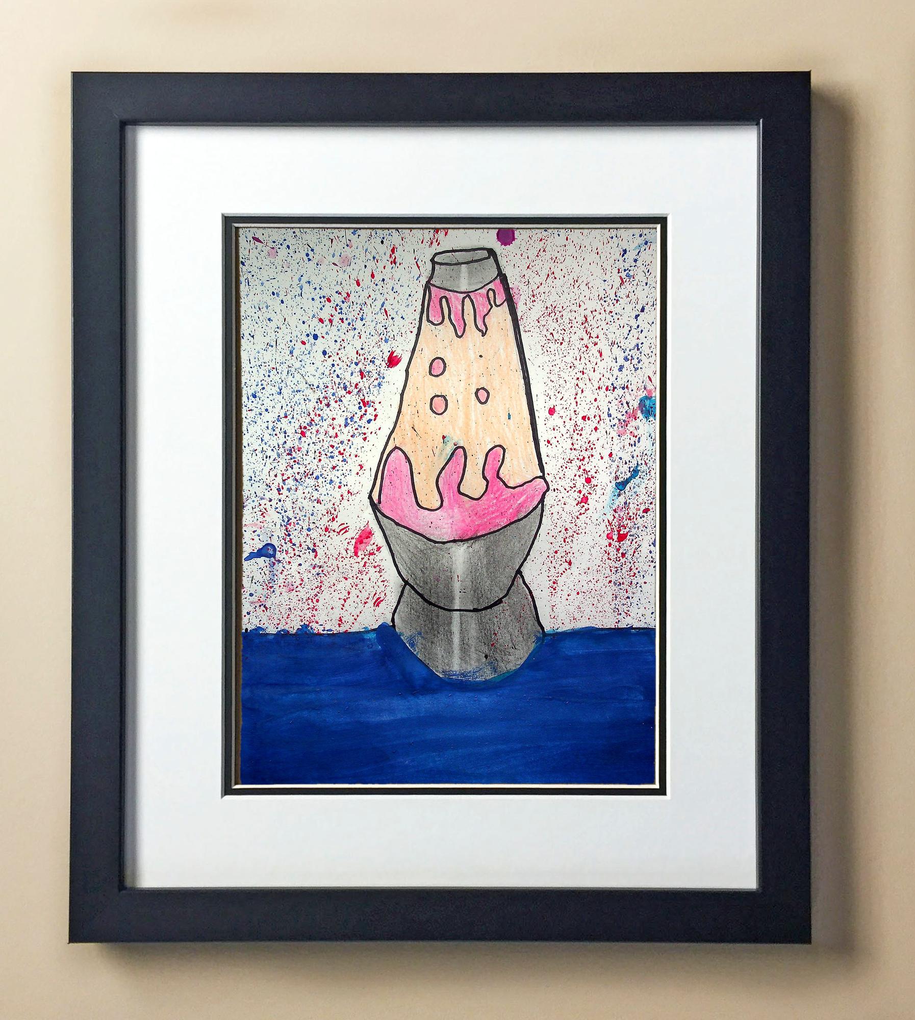 Included with the purchase is the Students Artwork, Frame, double matboard, shatter proof plexiglass, and a ready to hang backerboard with turnbuttons