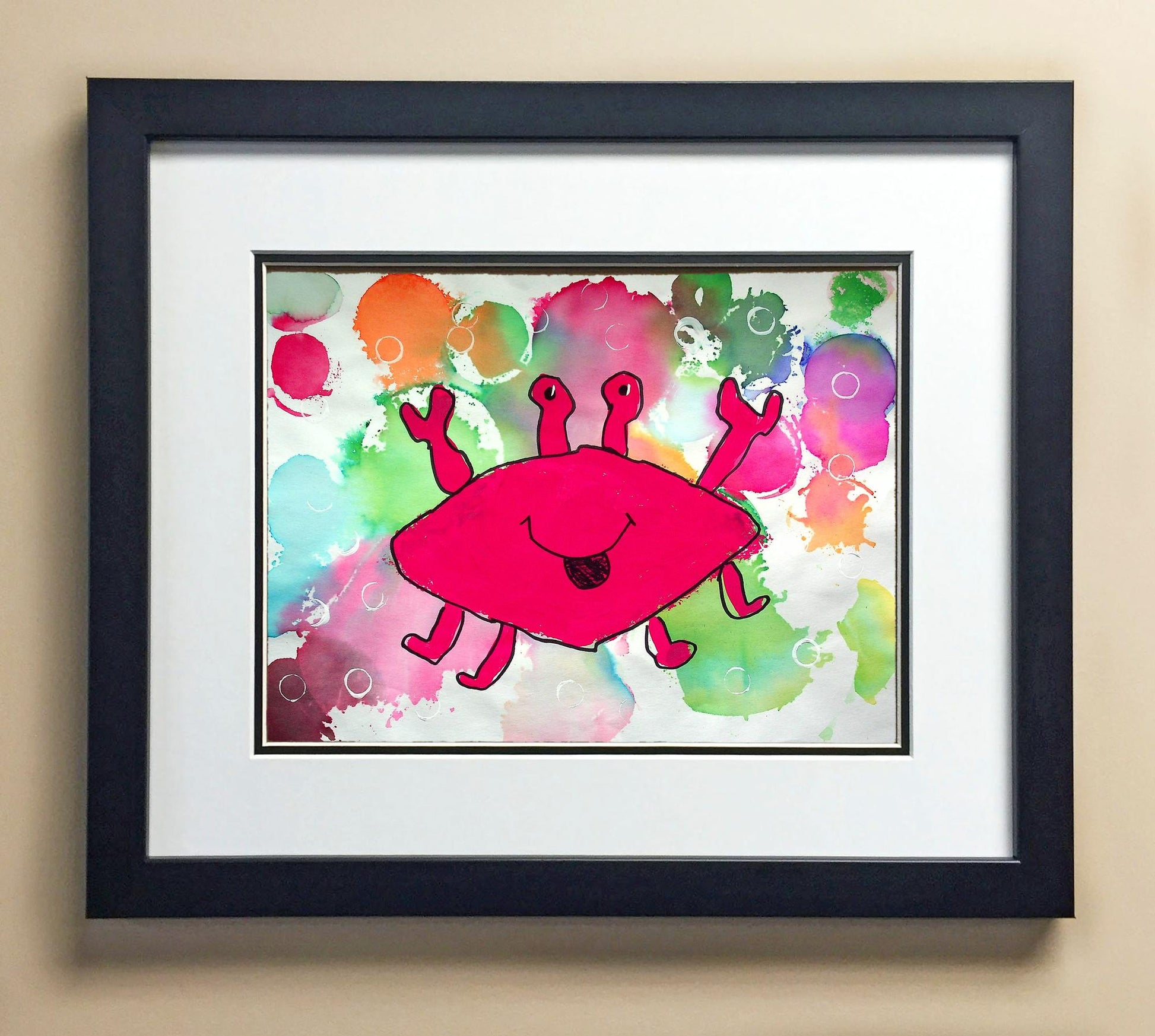 Included with the purchase is the Students Artwork, Frame, double matboard, shatter proof plexiglass, and a ready to hang backerboard with turnbuttons