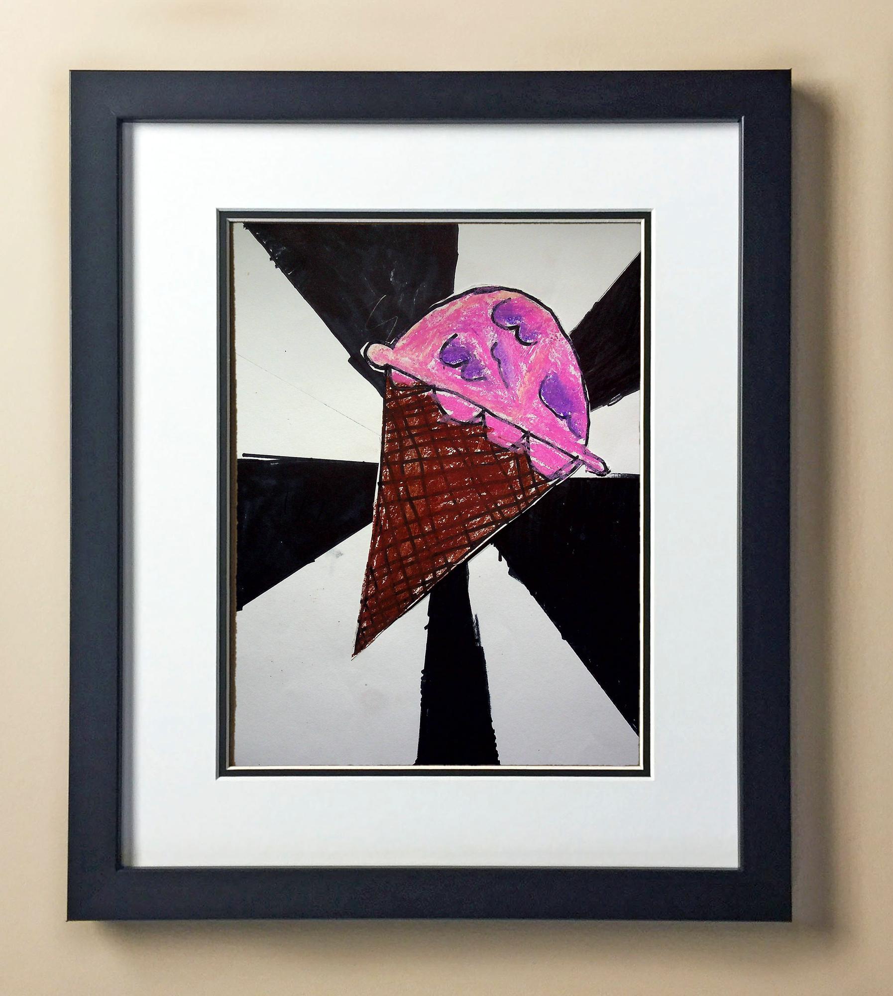 Included with the purchase is the Students Artwork, Frame, double matboard, shatter proof plexiglass, and a ready to hang backerboard with turnbuttons
