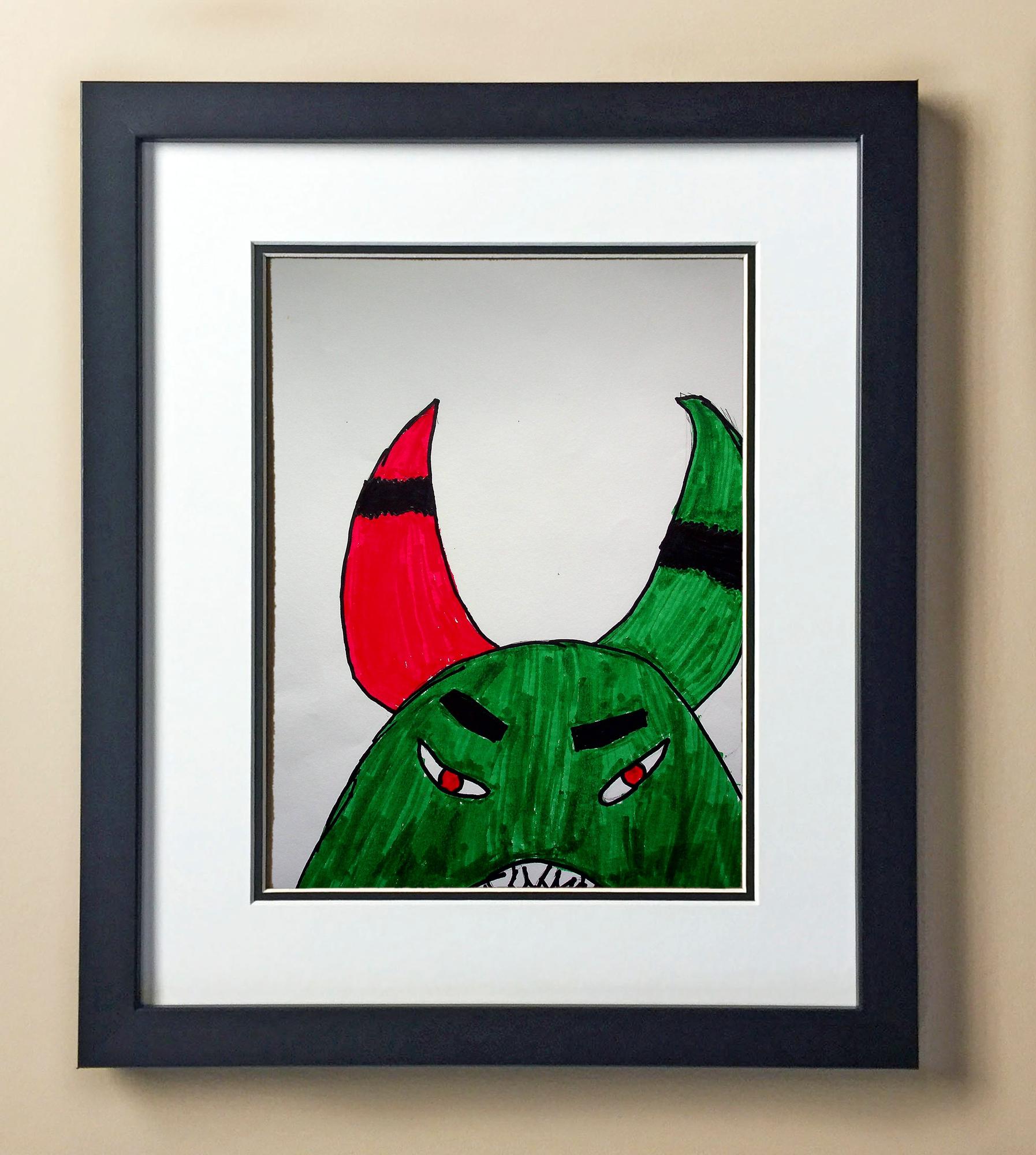 Included with the purchase is the Students Artwork, Frame, double matboard, shatter proof plexiglass, and a ready to hang backerboard with turnbuttons
