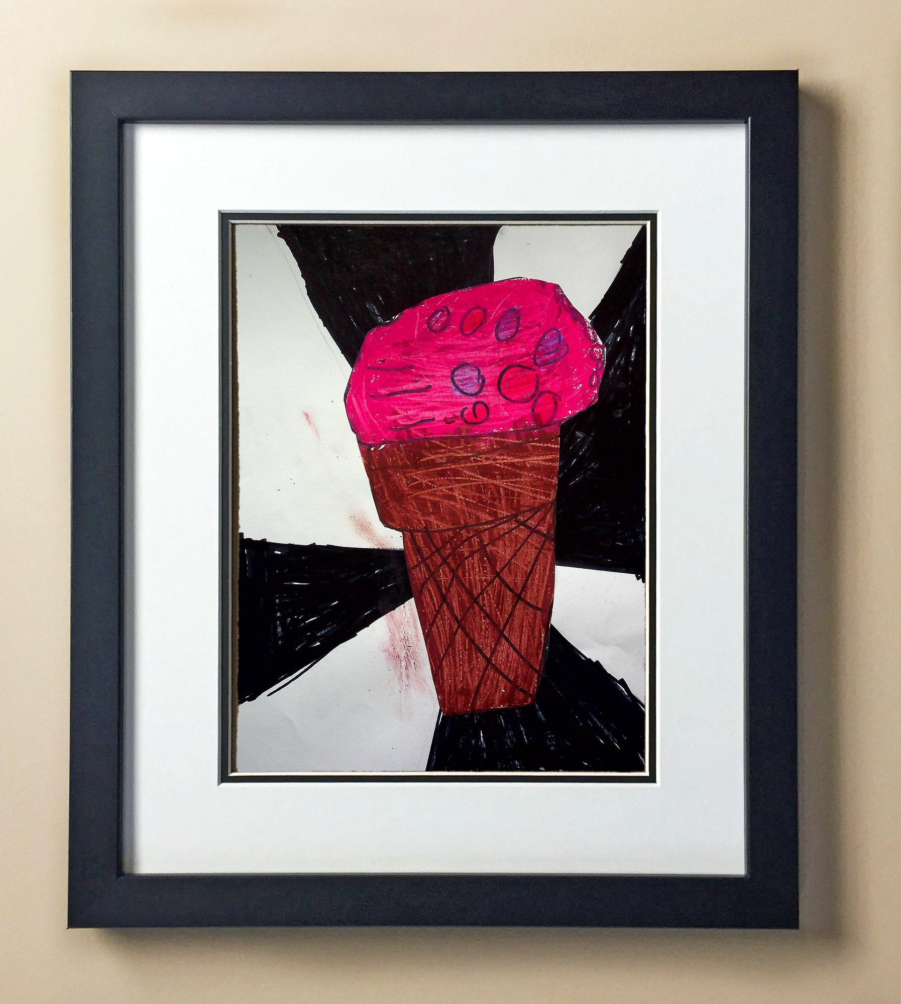Included with the purchase is the Students Artwork, Frame, double matboard, shatter proof plexiglass, and a ready to hang backerboard with turnbuttons