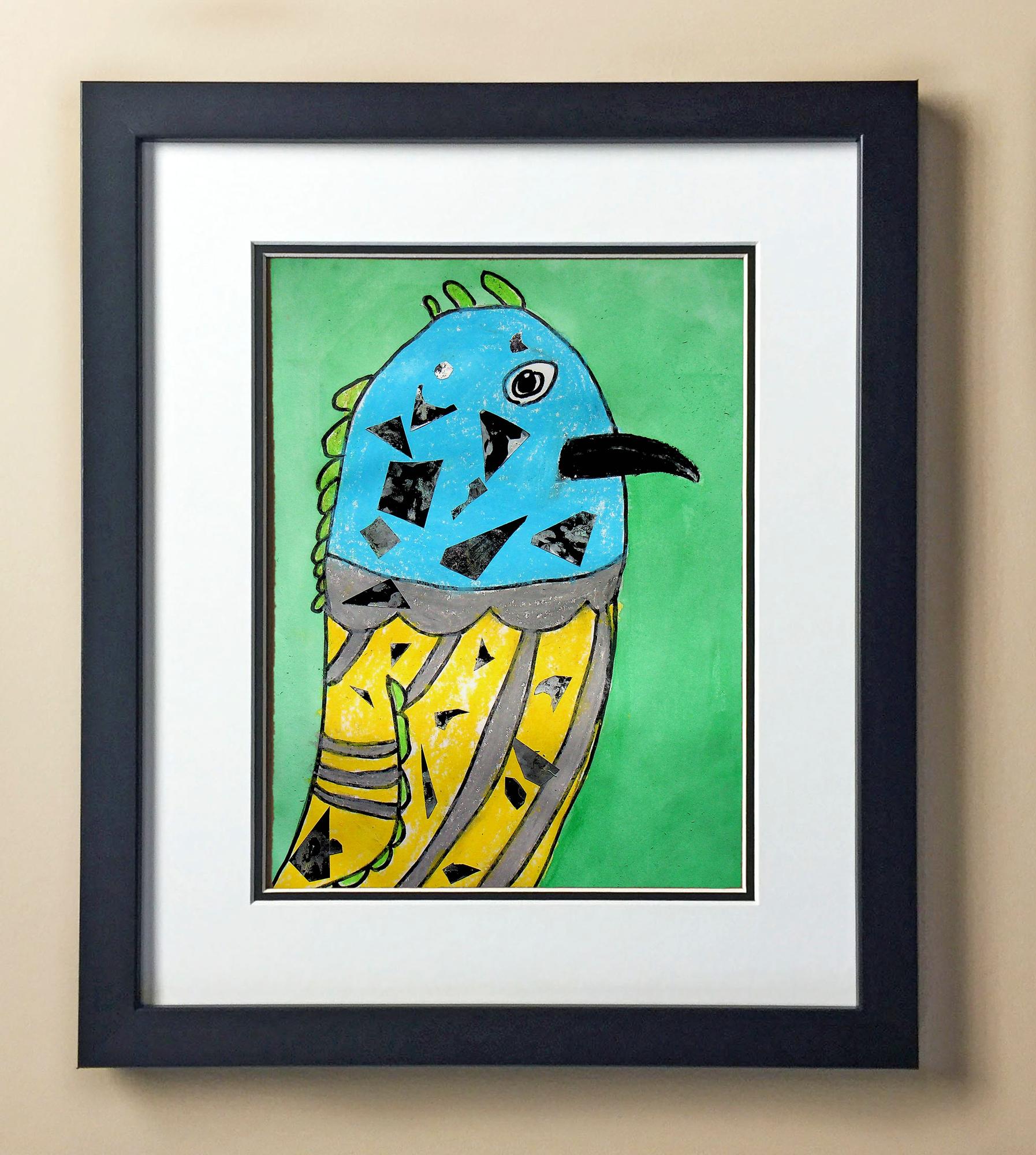 Included with the purchase is the Students Artwork, Frame, double matboard, shatter proof plexiglass, and a ready to hang backerboard with turnbuttons