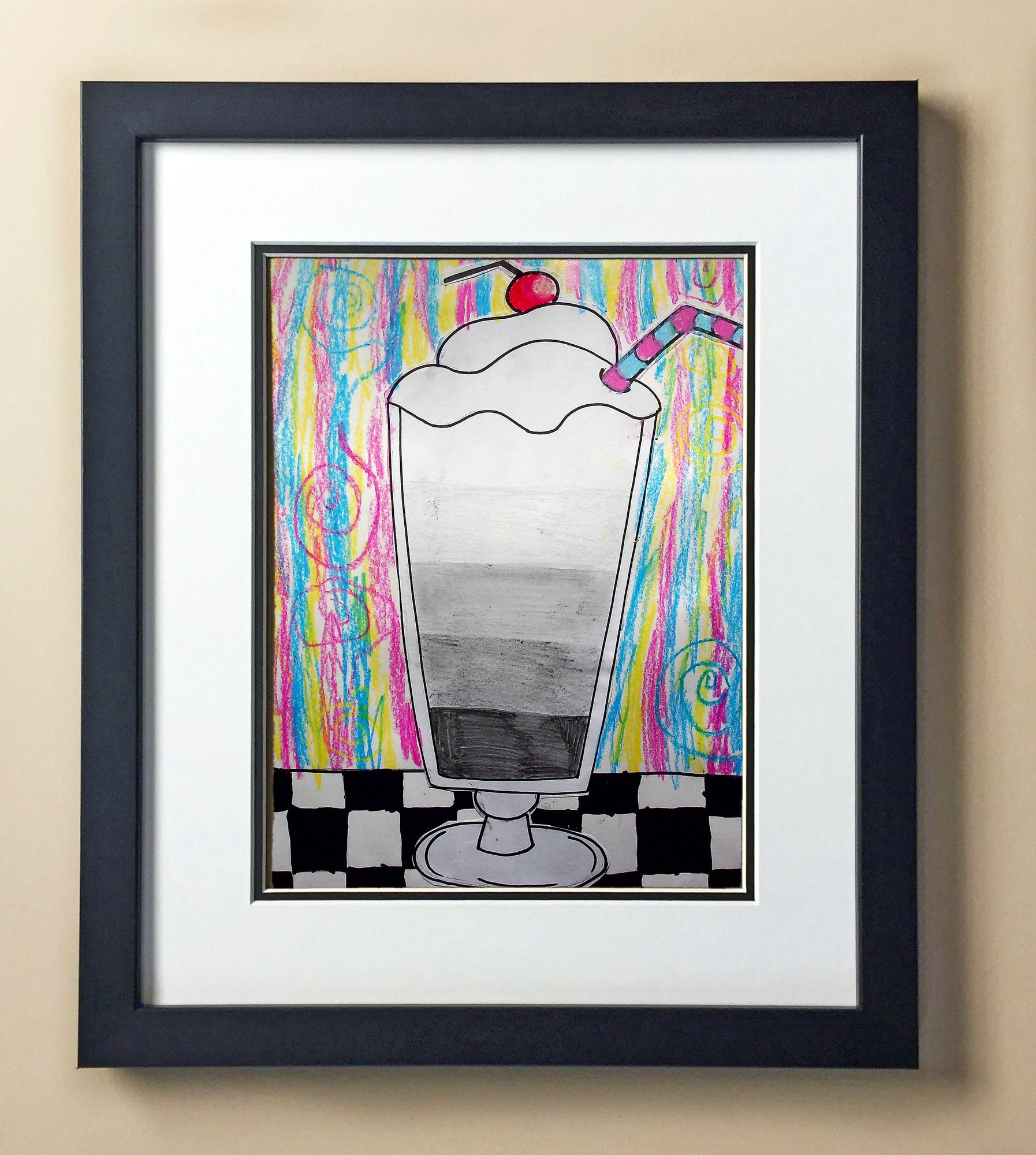 Included with the purchase is the Students Artwork, Frame, double matboard, shatter proof plexiglass, and a ready to hang backerboard with turnbuttons