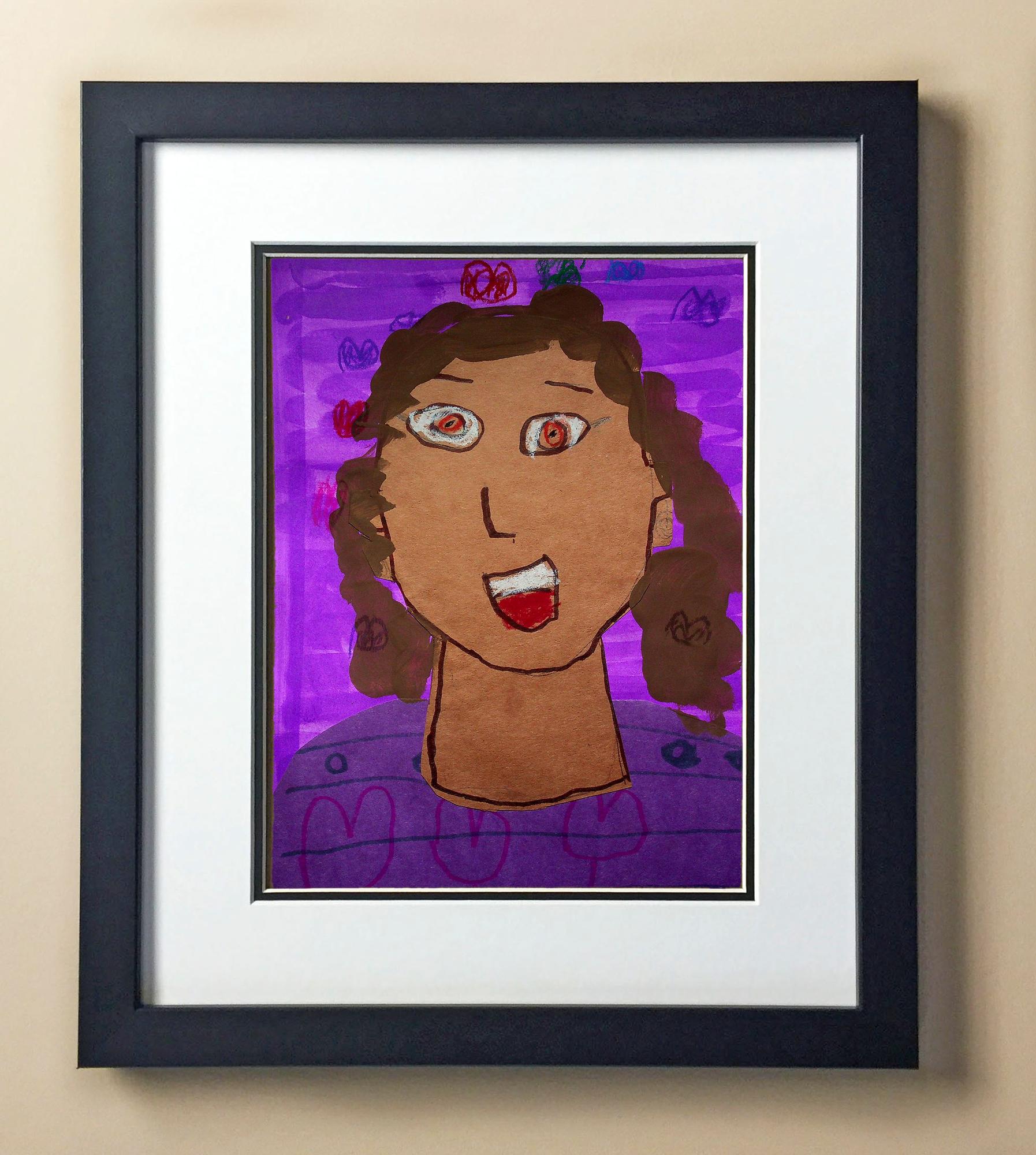 Included with the purchase is the Students Artwork, Frame, double matboard, shatter proof plexiglass, and a ready to hang backerboard with turnbuttons
