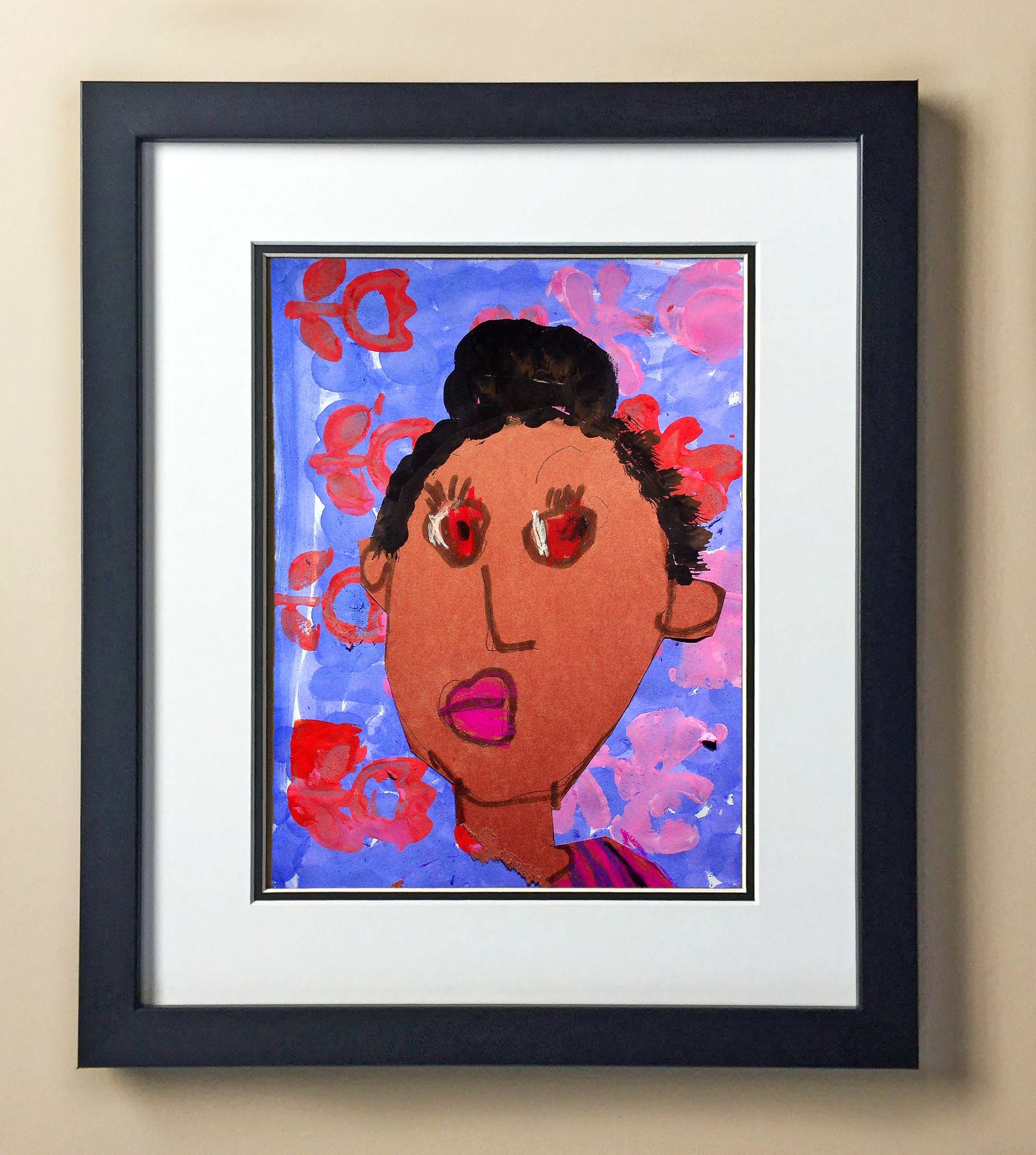 Included with the purchase is the Students Artwork, Frame, double matboard, shatter proof plexiglass, and a ready to hang backerboard with turnbuttons