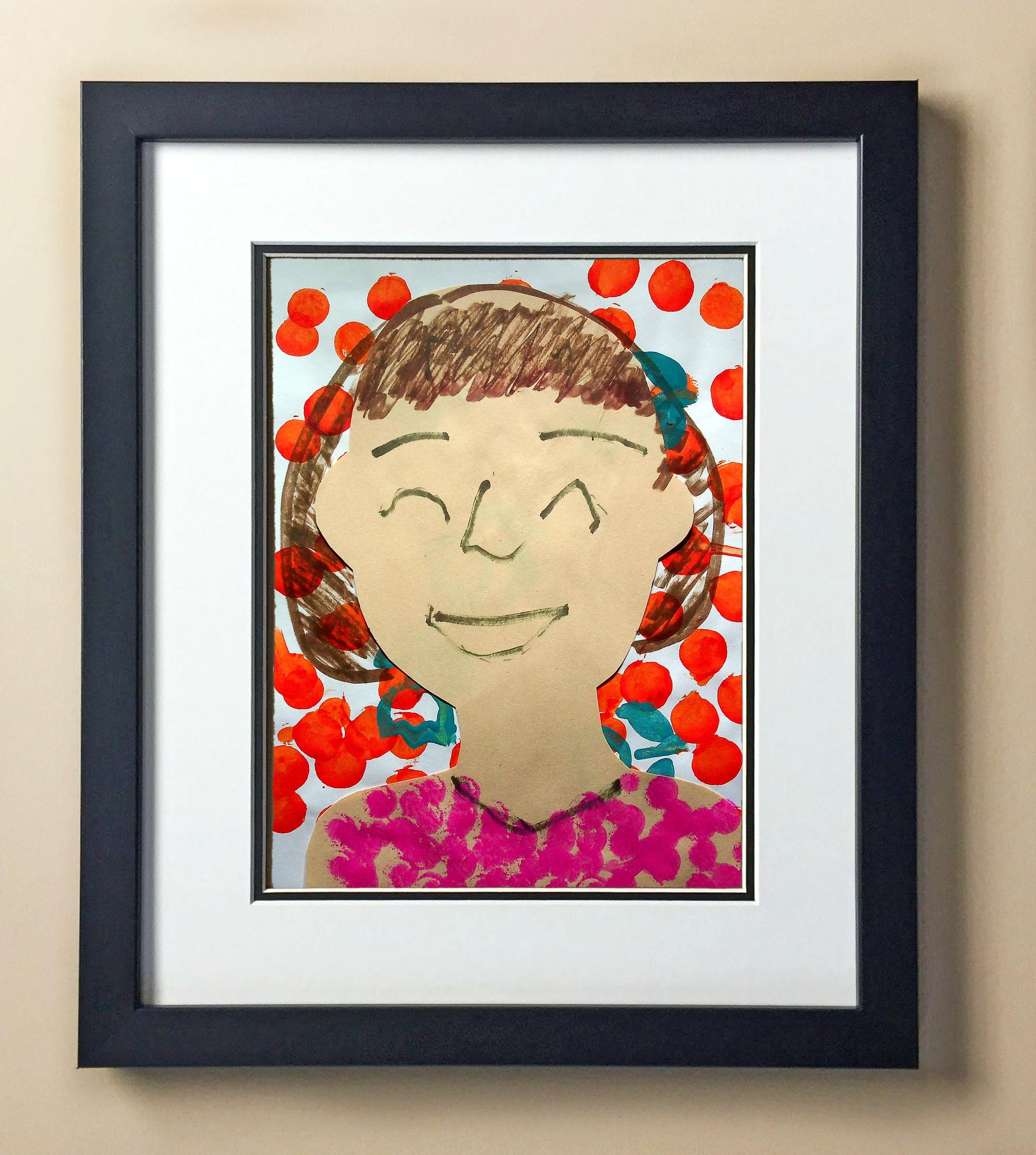 Included with the purchase is the Students Artwork, Frame, double matboard, shatter proof plexiglass, and a ready to hang backerboard with turnbuttons