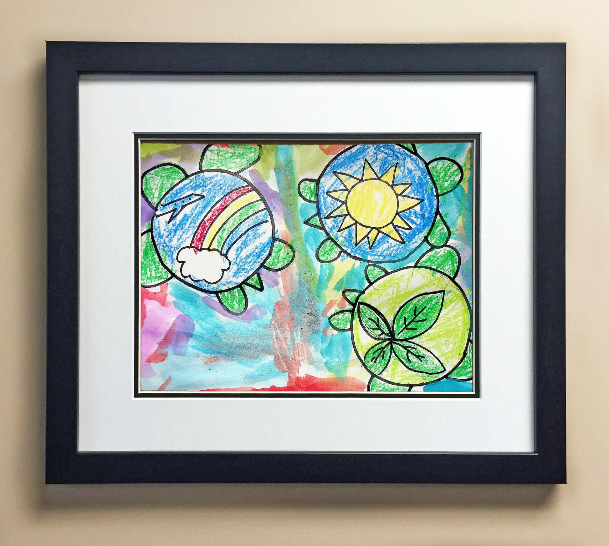 Included with the purchase is the Students Artwork, Frame, double matboard, shatter proof plexiglass, and a ready to hang backerboard with turnbuttons