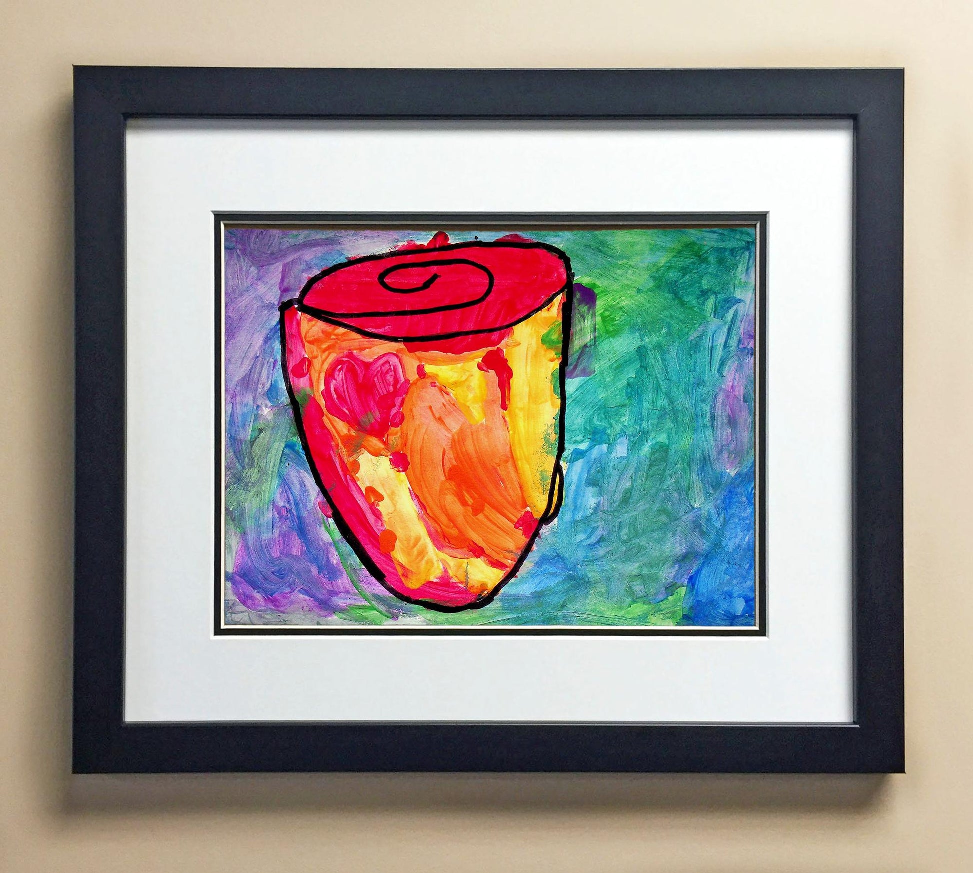 Included with the purchase is the Students Artwork, Frame, double matboard, shatter proof plexiglass, and a ready to hang backerboard with turnbuttons