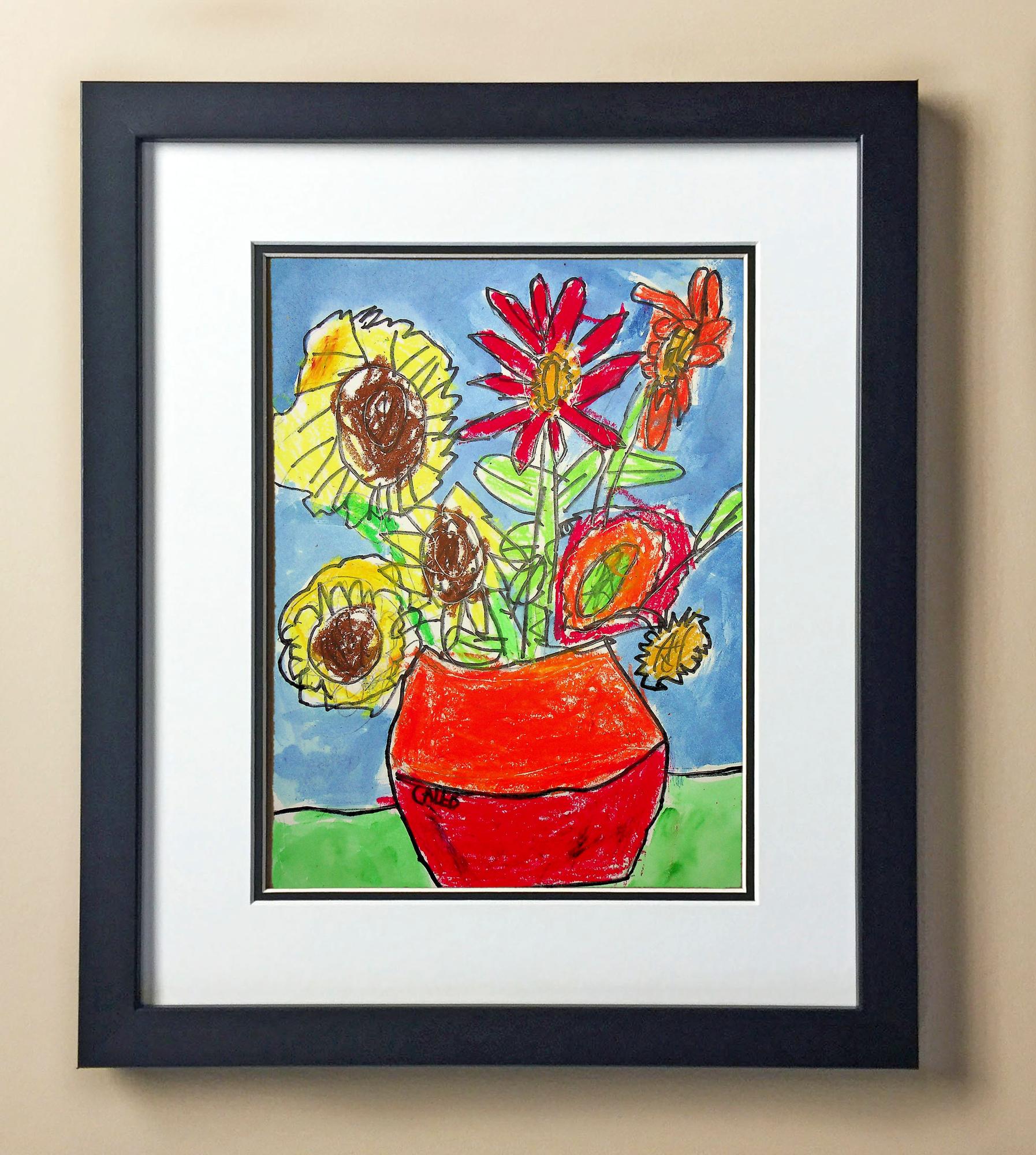 Included with the purchase is the Students Artwork, Frame, double matboard, shatter proof plexiglass, and a ready to hang backerboard with turnbuttons