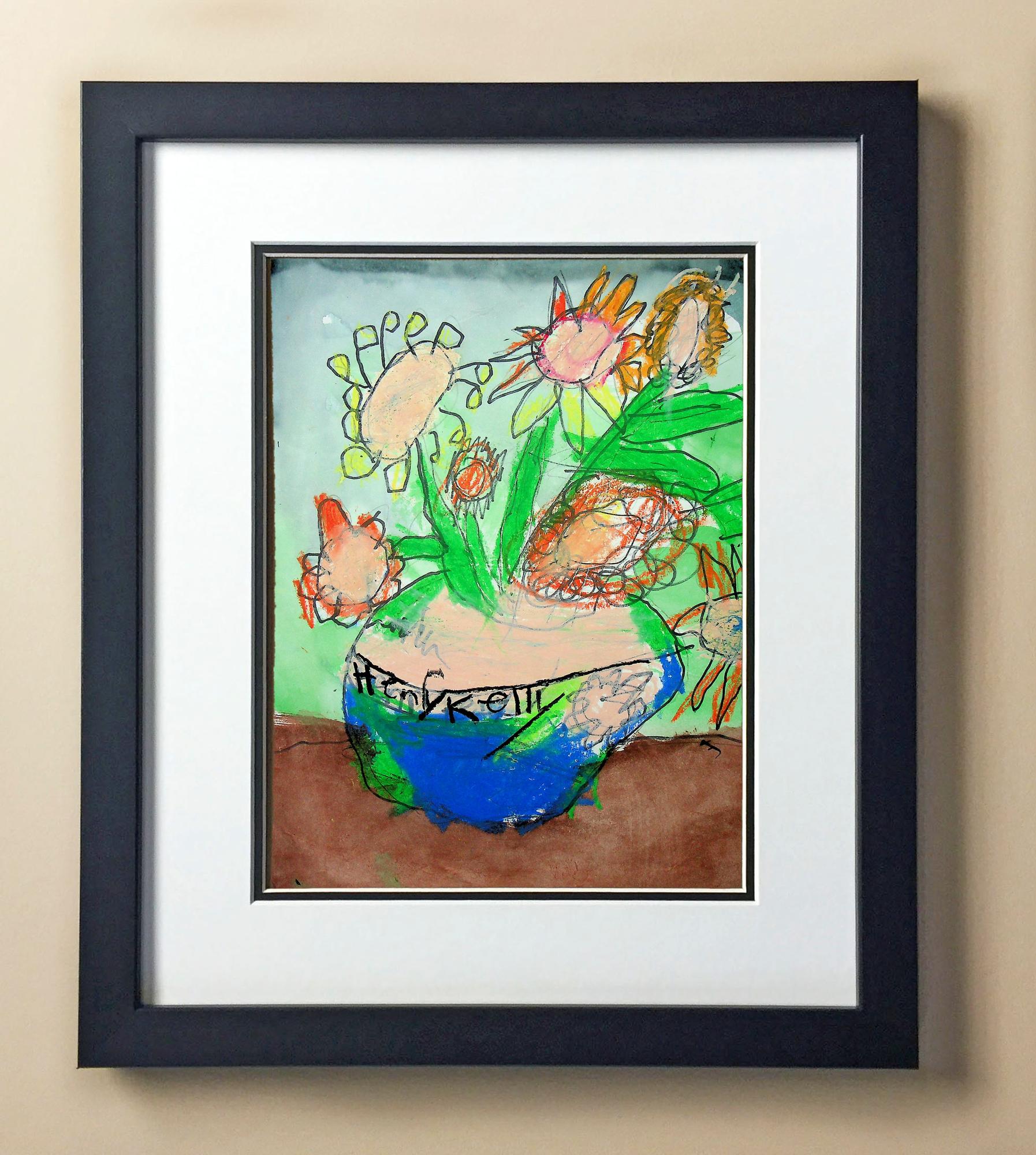 Included with the purchase is the Students Artwork, Frame, double matboard, shatter proof plexiglass, and a ready to hang backerboard with turnbuttons