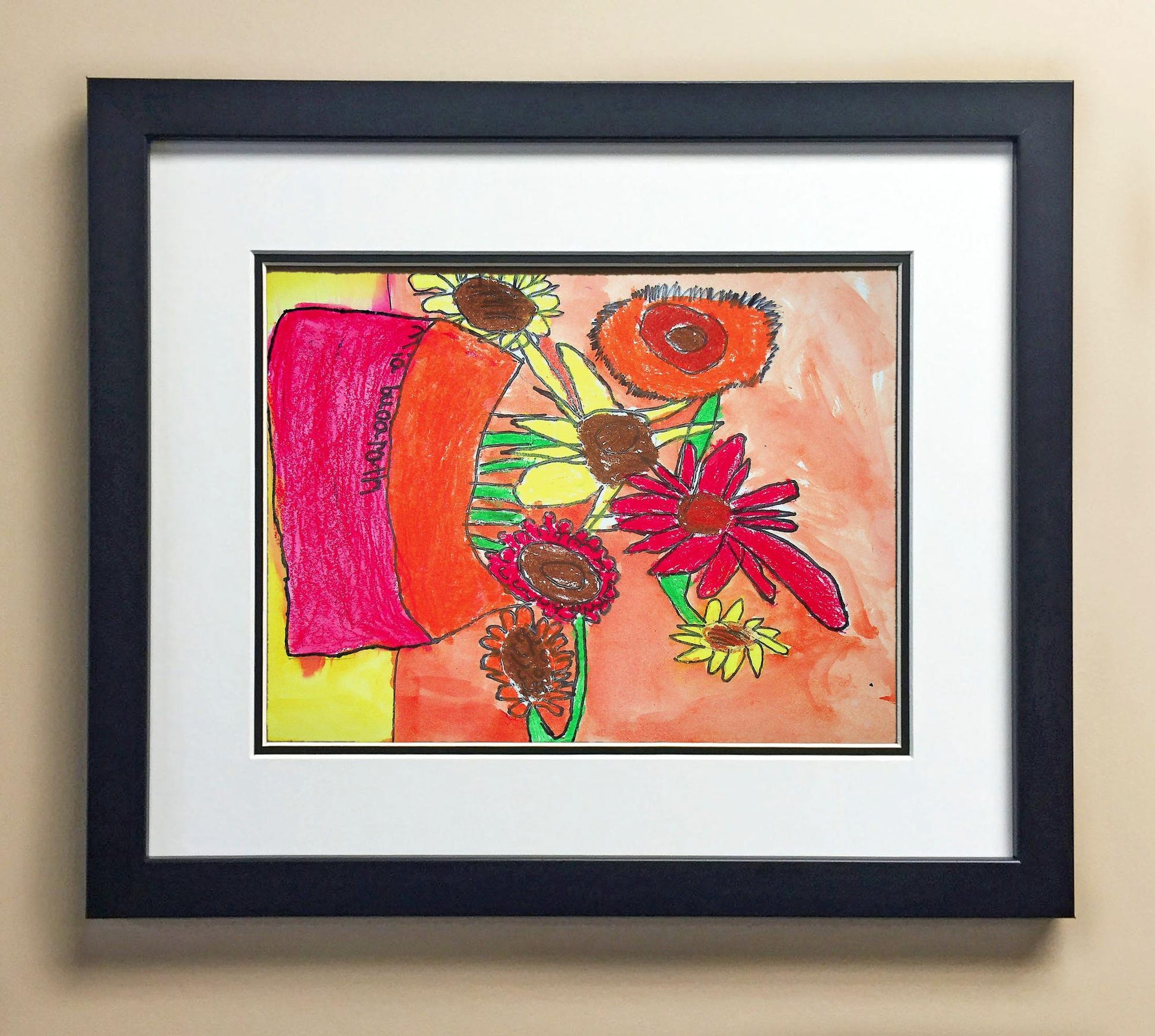 Included with the purchase is the Students Artwork, Frame, double matboard, shatter proof plexiglass, and a ready to hang backerboard with turnbuttons