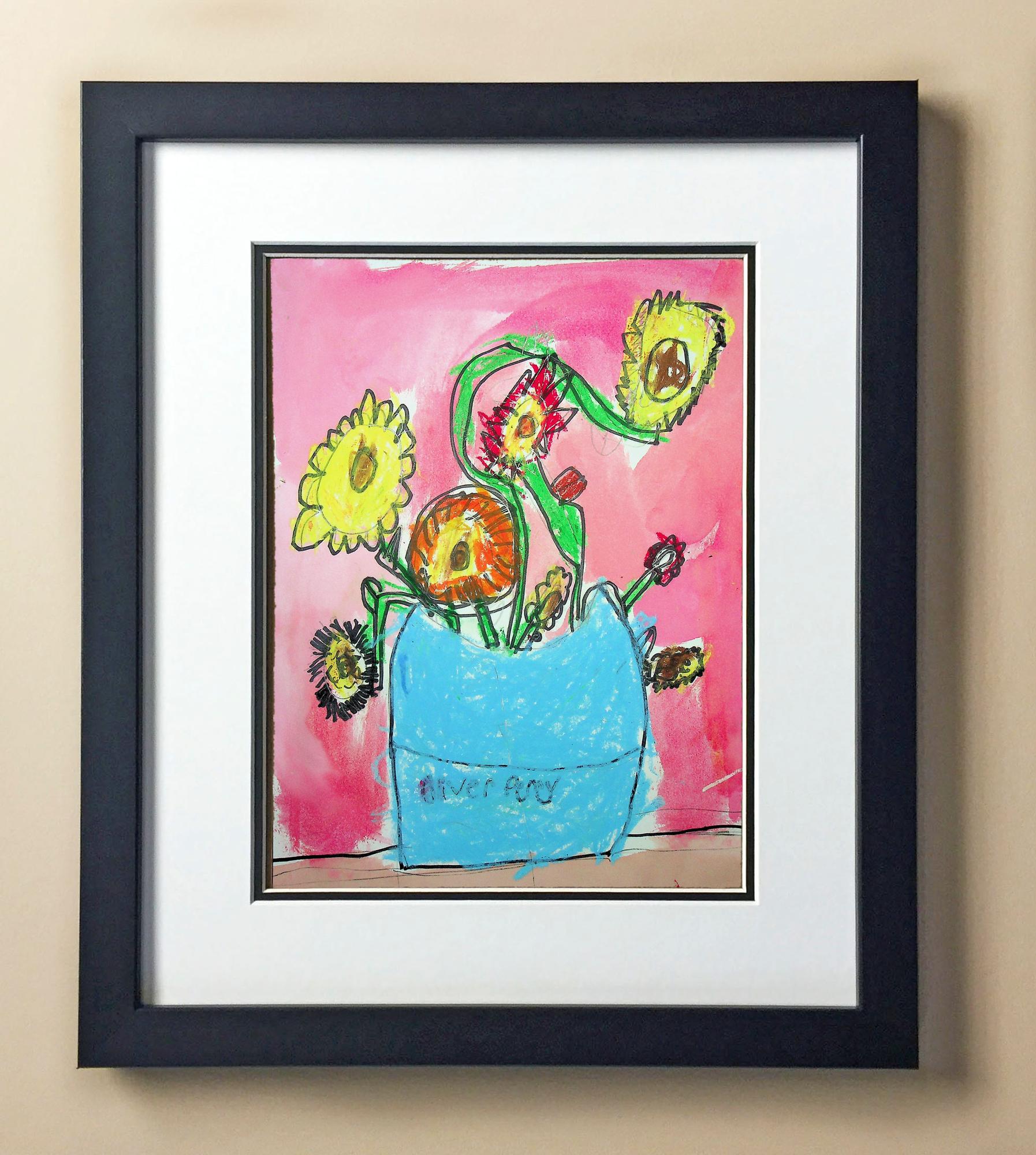 Included with the purchase is the Students Artwork, Frame, double matboard, shatter proof plexiglass, and a ready to hang backerboard with turnbuttons