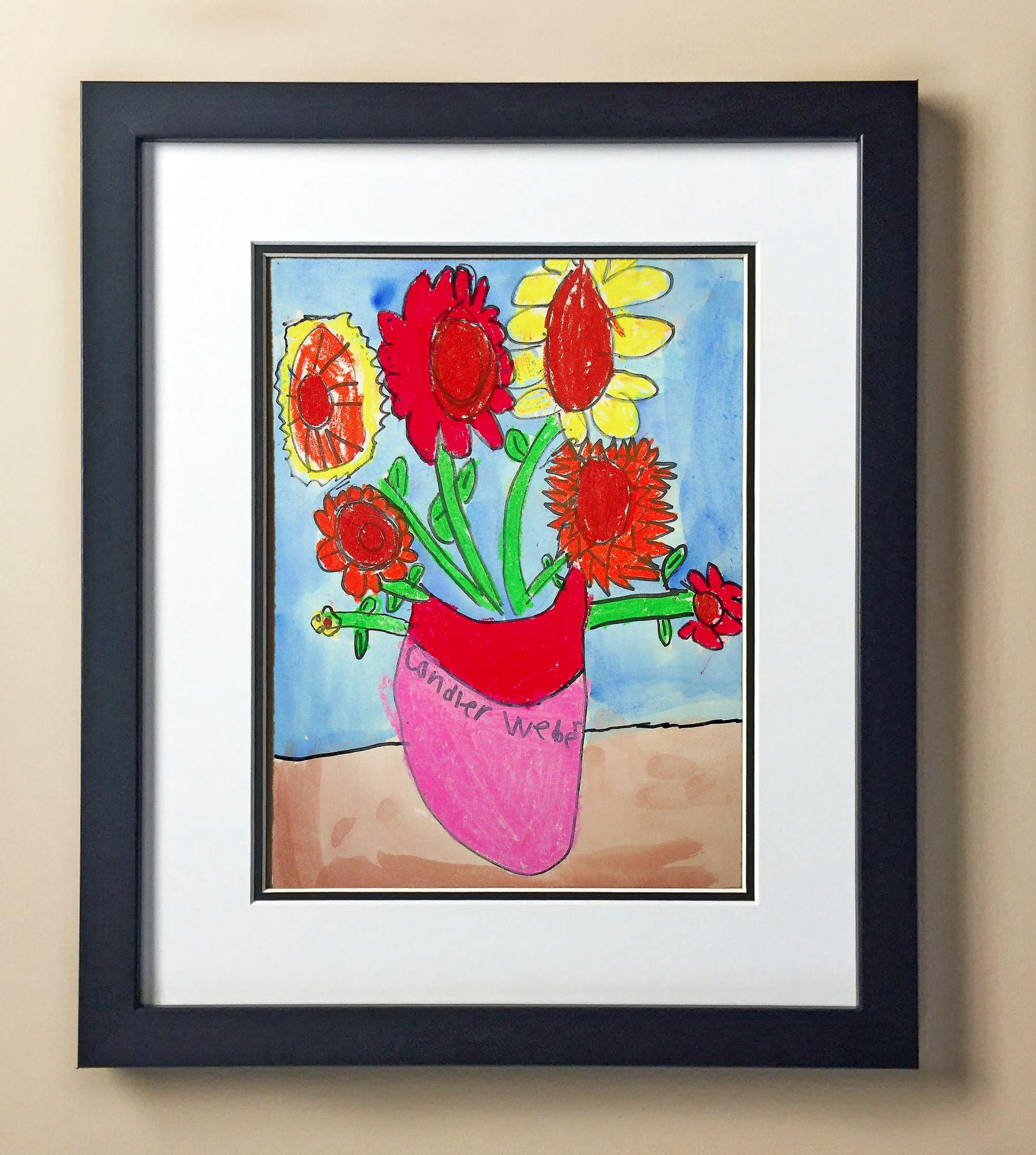 Included with the purchase is the Students Artwork, Frame, double matboard, shatter proof plexiglass, and a ready to hang backerboard with turnbuttons