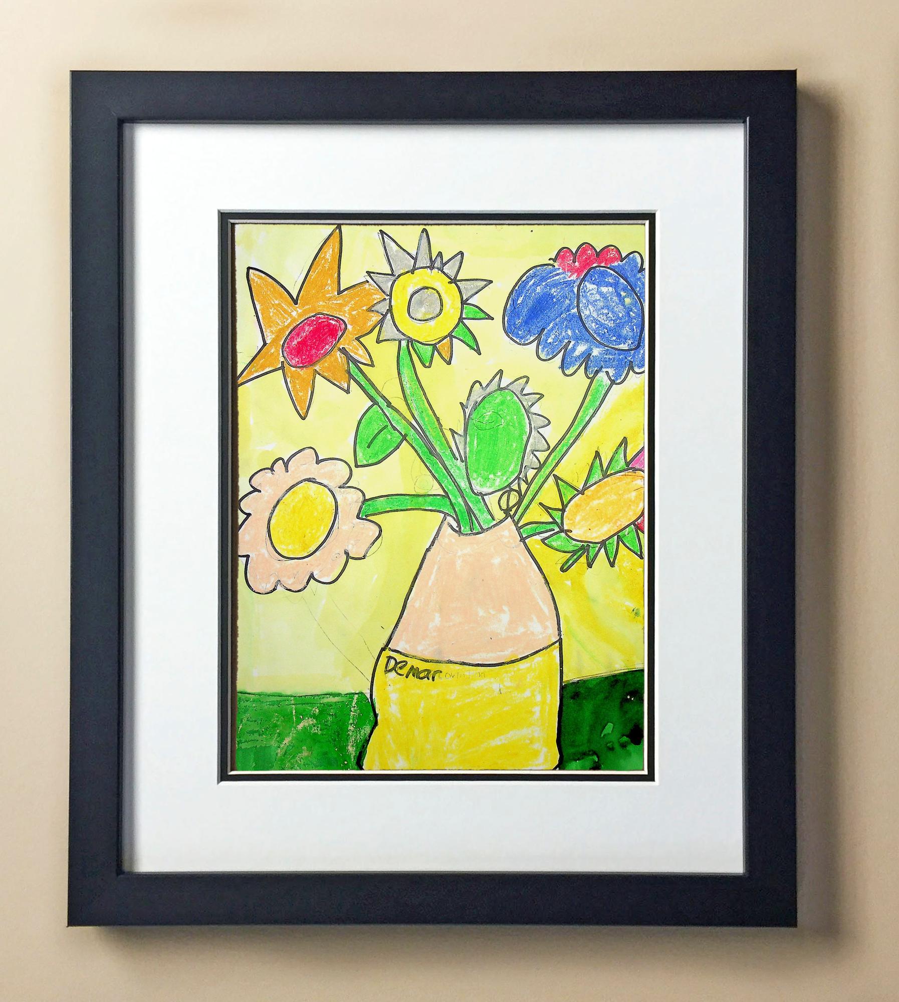Included with the purchase is the Students Artwork, Frame, double matboard, shatter proof plexiglass, and a ready to hang backerboard with turnbuttons