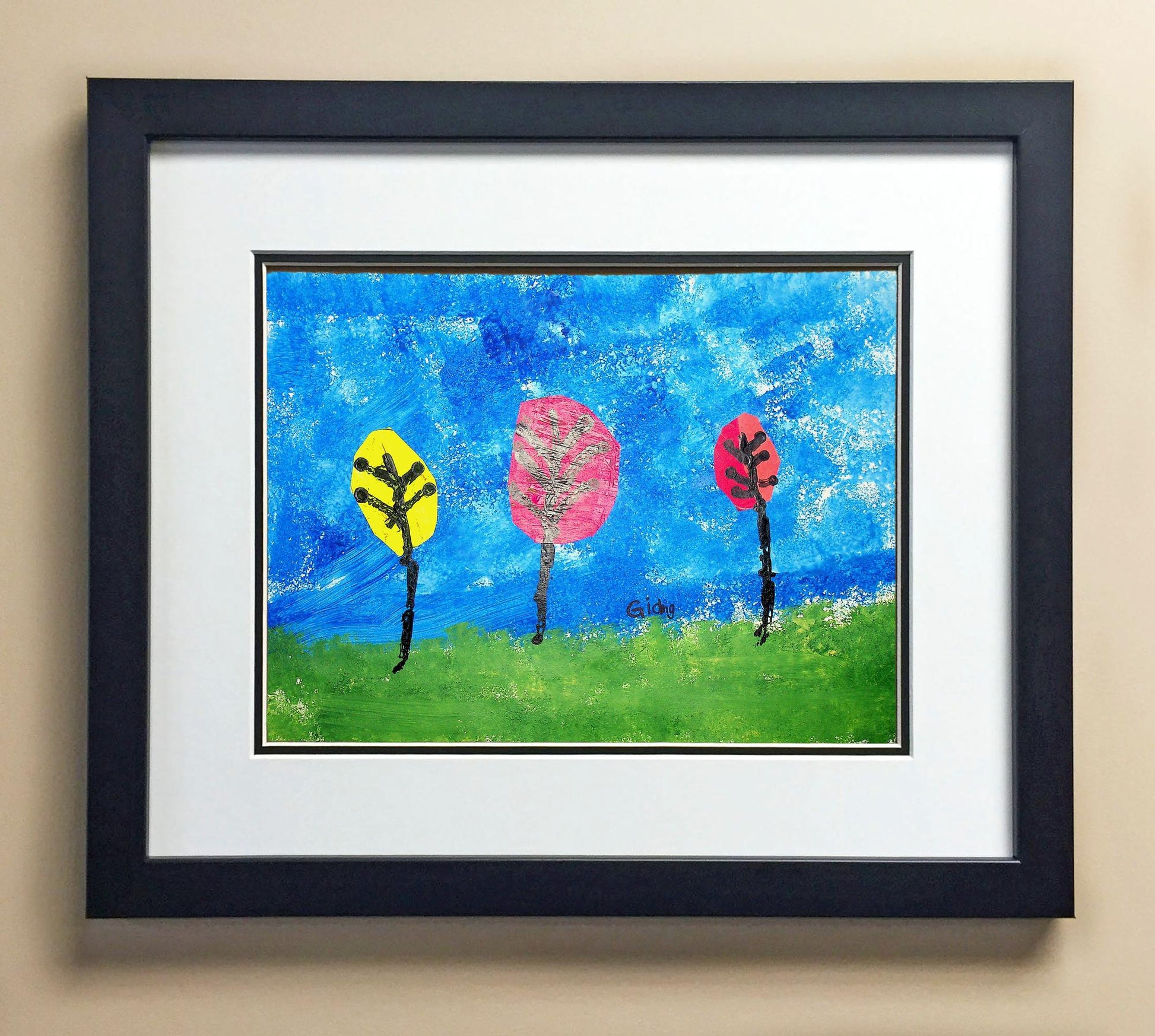 Included with the purchase is the Students Artwork, Frame, double matboard, shatter proof plexiglass, and a ready to hang backerboard with turnbuttons
