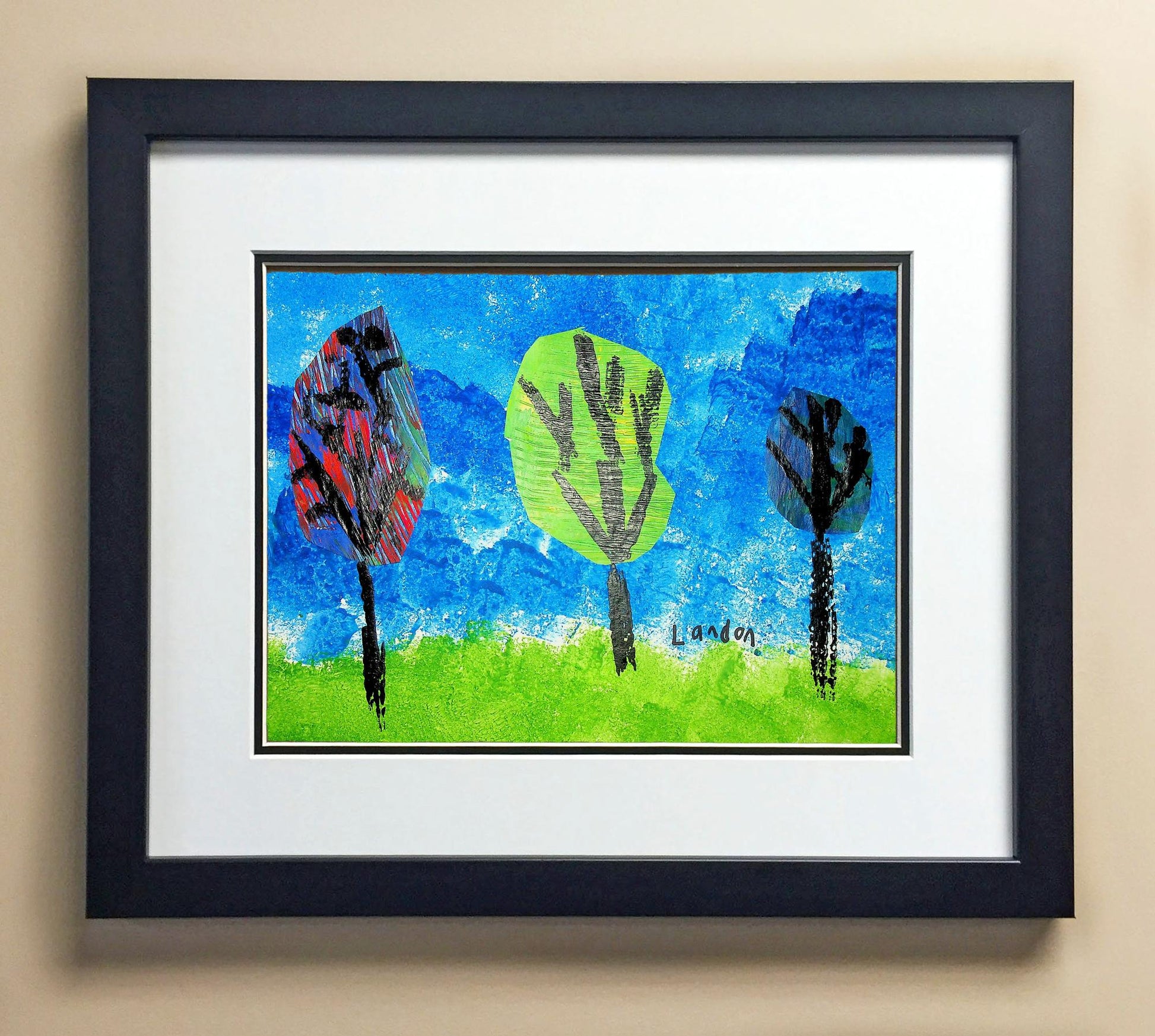 Included with the purchase is the Students Artwork, Frame, double matboard, shatter proof plexiglass, and a ready to hang backerboard with turnbuttons