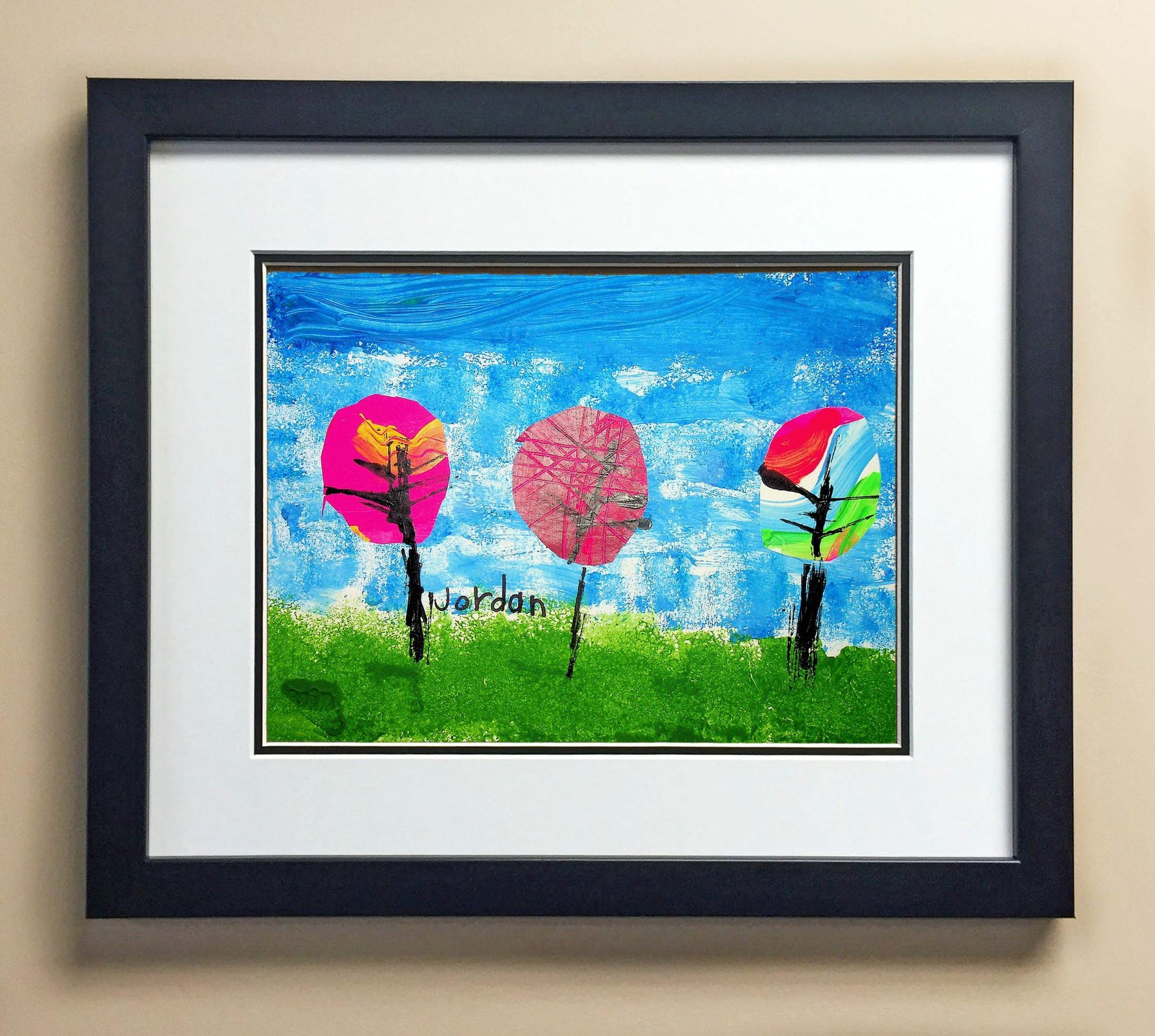 Included with the purchase is the Students Artwork, Frame, double matboard, shatter proof plexiglass, and a ready to hang backerboard with turnbuttons
