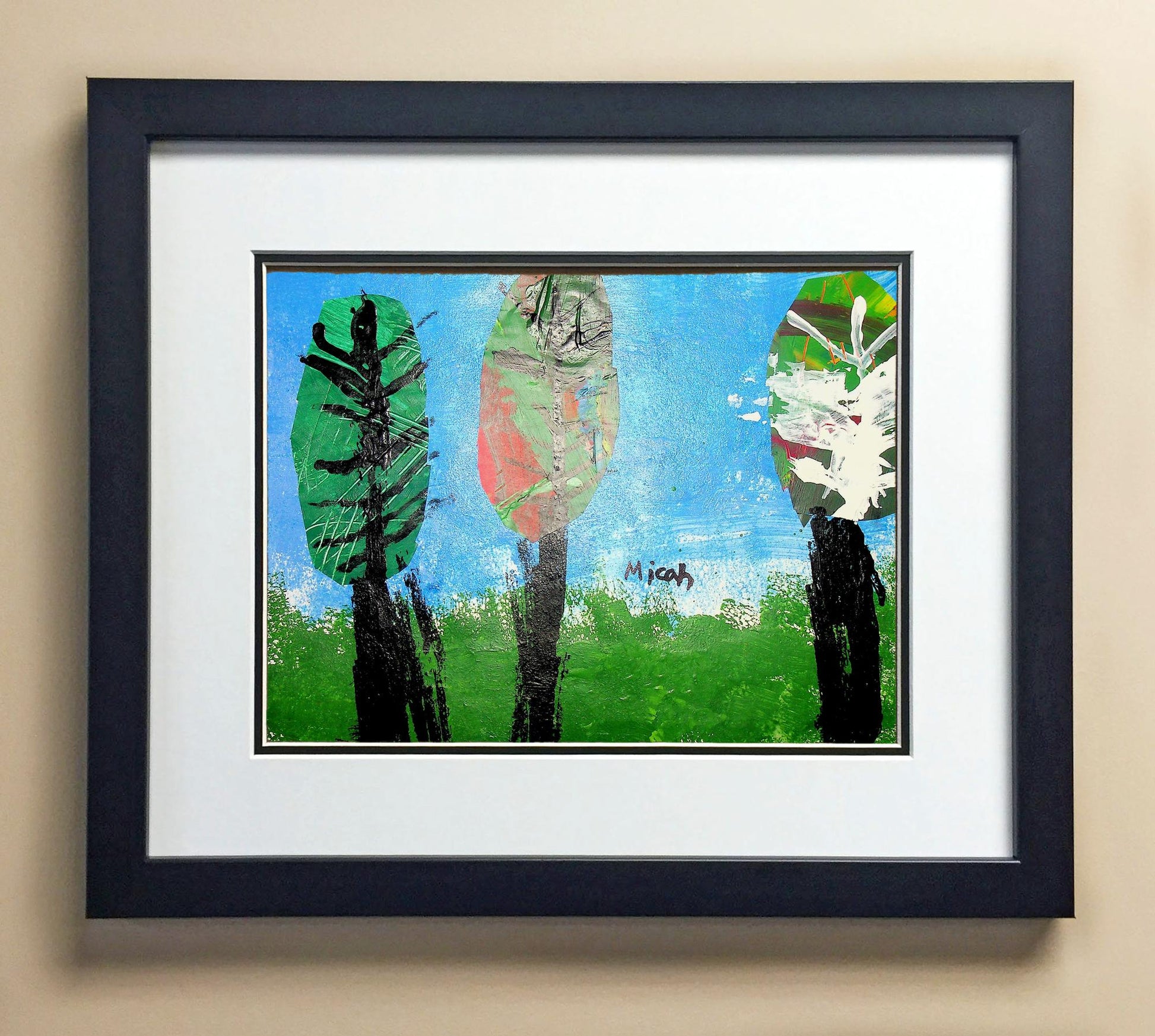Included with the purchase is the Students Artwork, Frame, double matboard, shatter proof plexiglass, and a ready to hang backerboard with turnbuttons