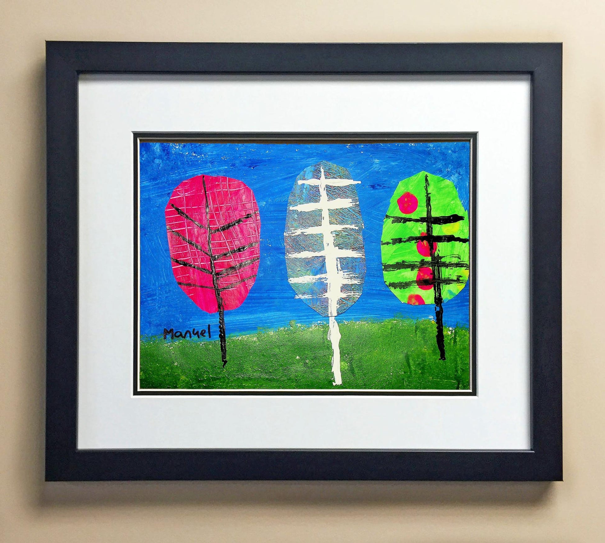 Included with the purchase is the Students Artwork, Frame, double matboard, shatter proof plexiglass, and a ready to hang backerboard with turnbuttons