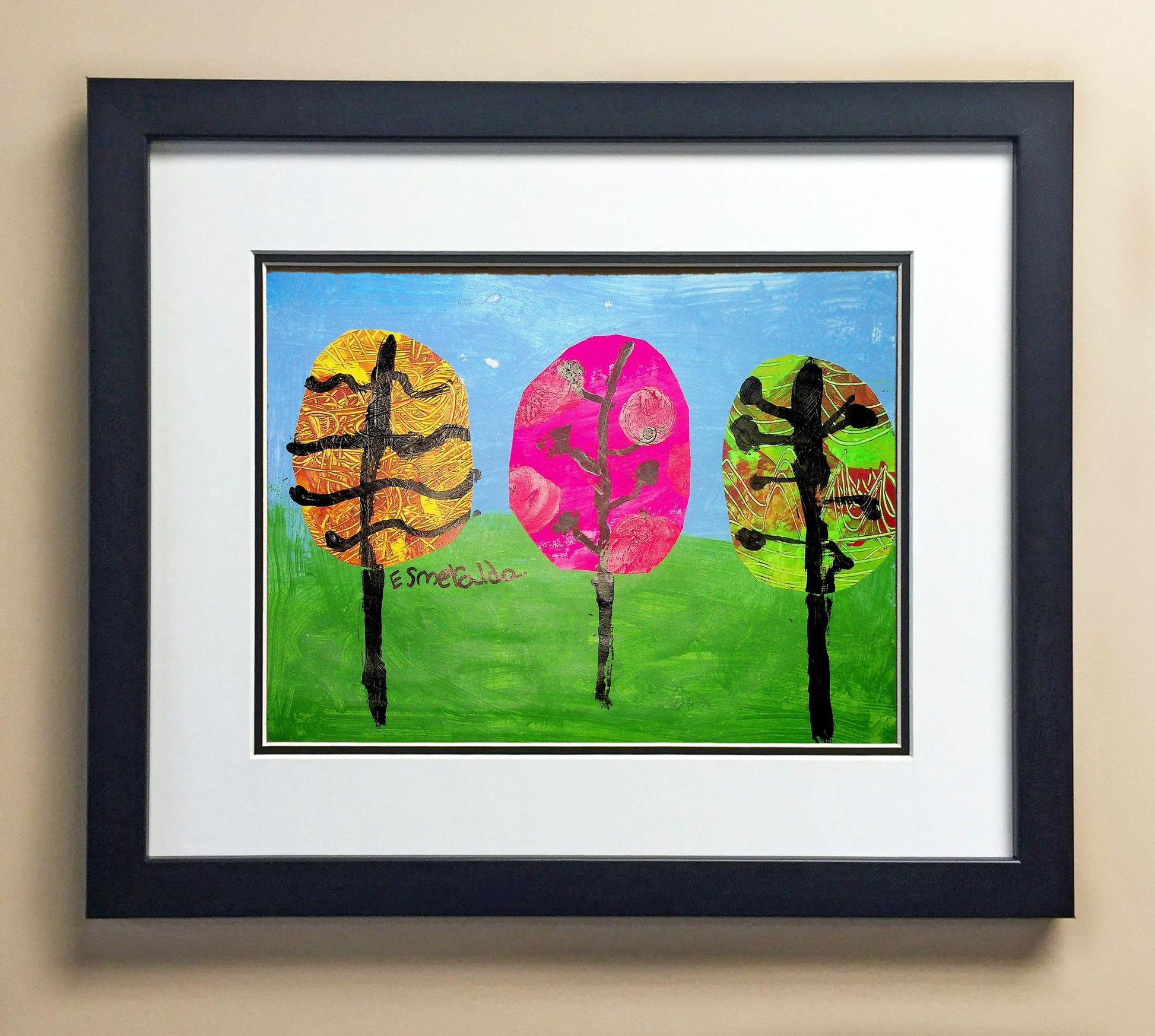 Included with the purchase is the Students Artwork, Frame, double matboard, shatter proof plexiglass, and a ready to hang backerboard with turnbuttons