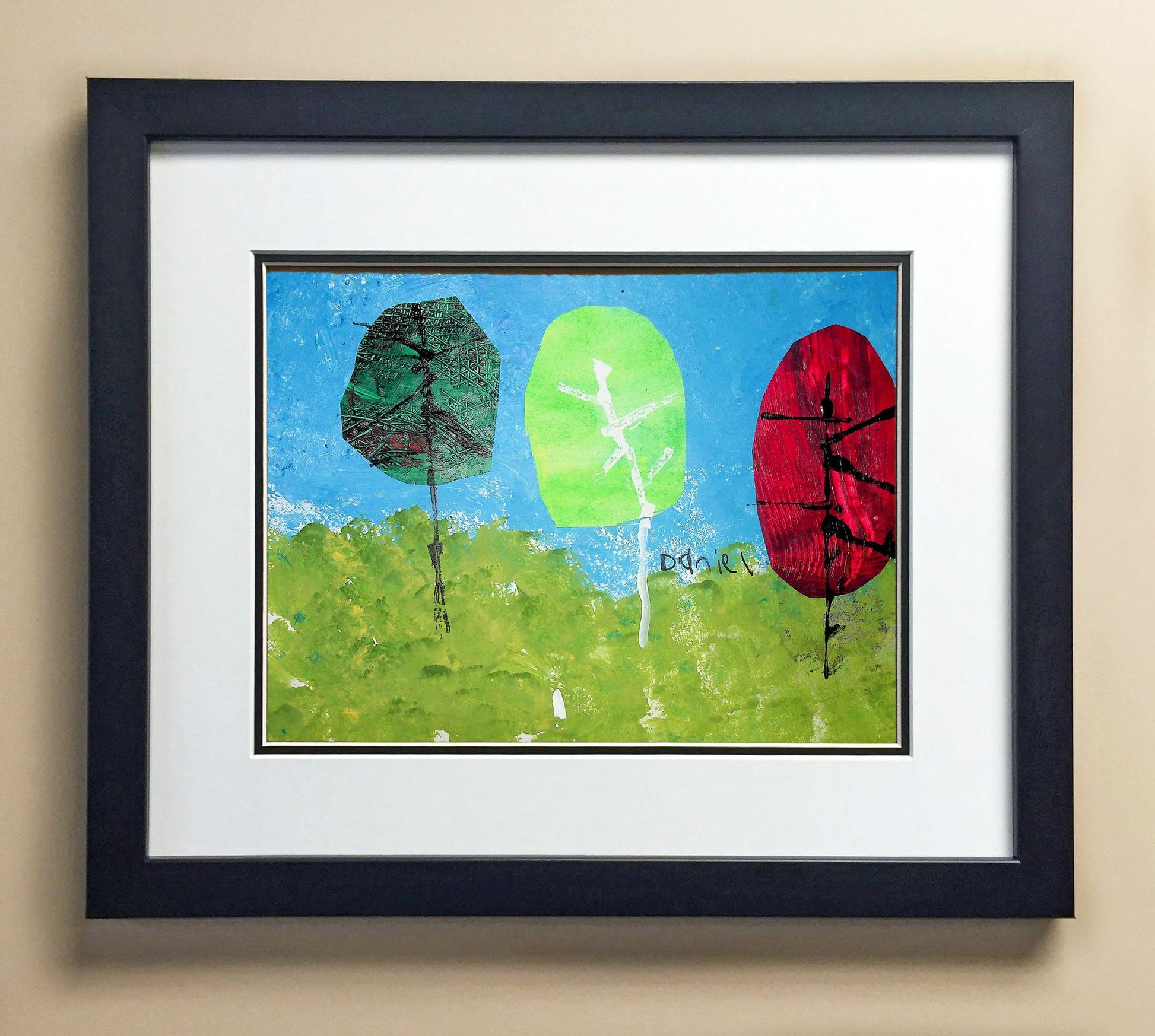 Included with the purchase is the Students Artwork, Frame, double matboard, shatter proof plexiglass, and a ready to hang backerboard with turnbuttons