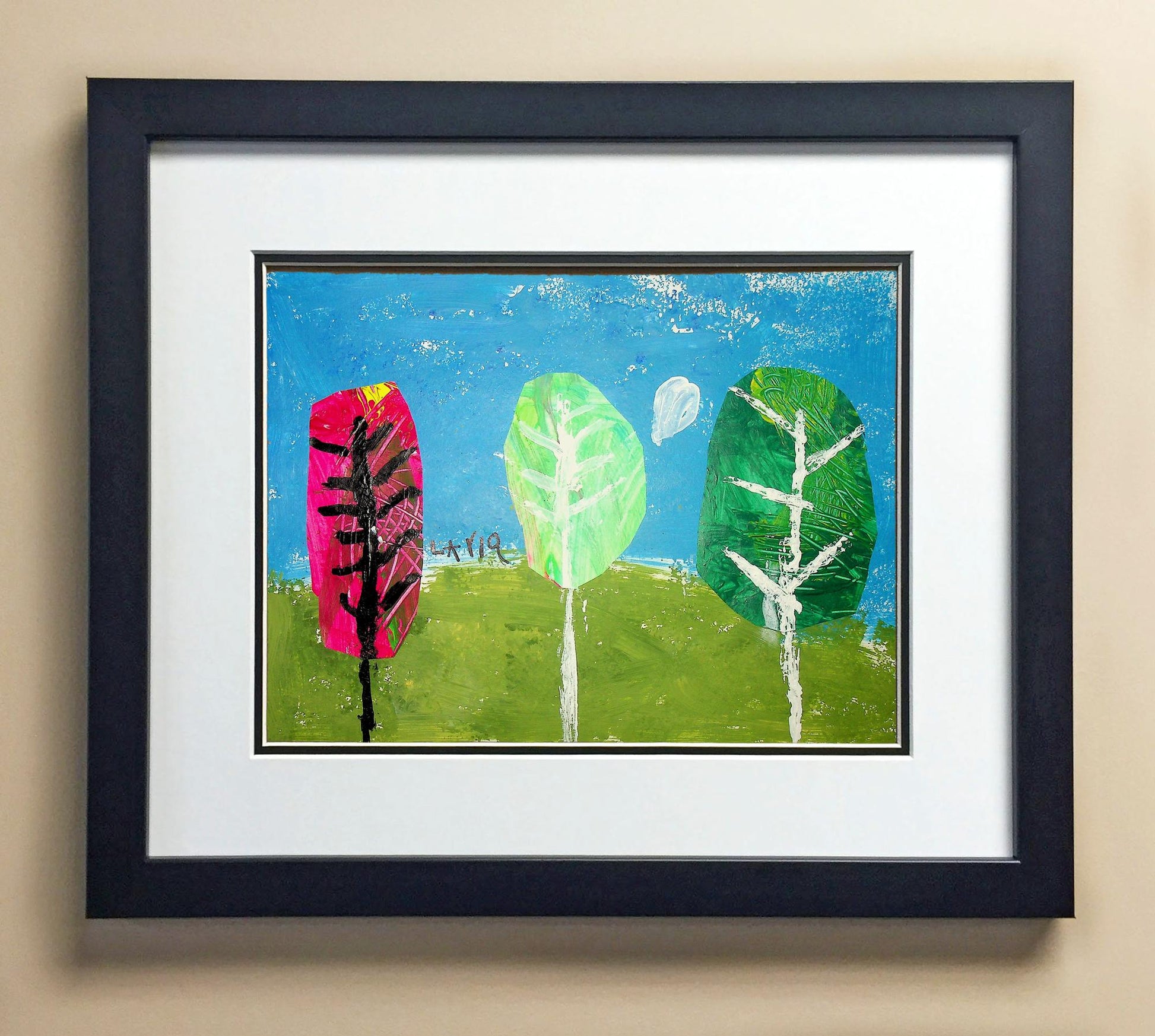 Included with the purchase is the Students Artwork, Frame, double matboard, shatter proof plexiglass, and a ready to hang backerboard with turnbuttons