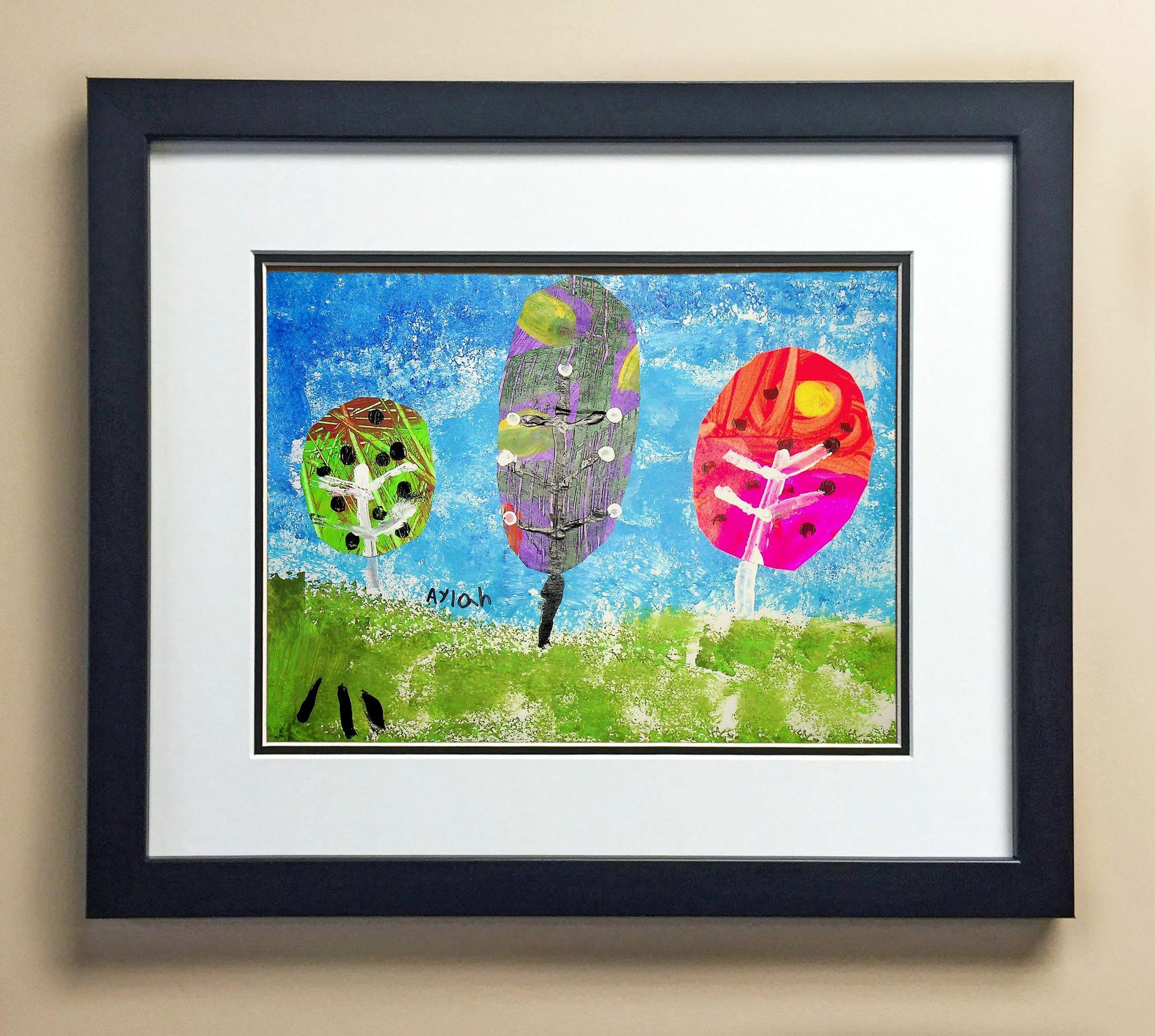 Included with the purchase is the Students Artwork, Frame, double matboard, shatter proof plexiglass, and a ready to hang backerboard with turnbuttons