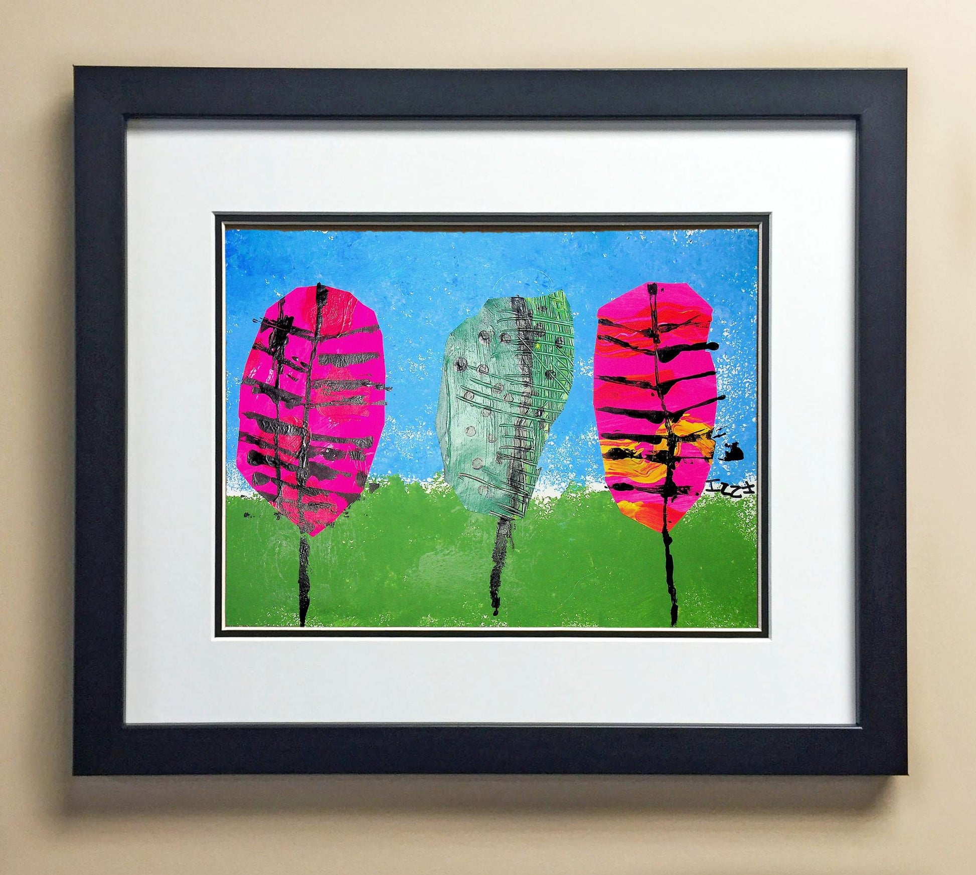 Included with the purchase is the Students Artwork, Frame, double matboard, shatter proof plexiglass, and a ready to hang backerboard with turnbuttons