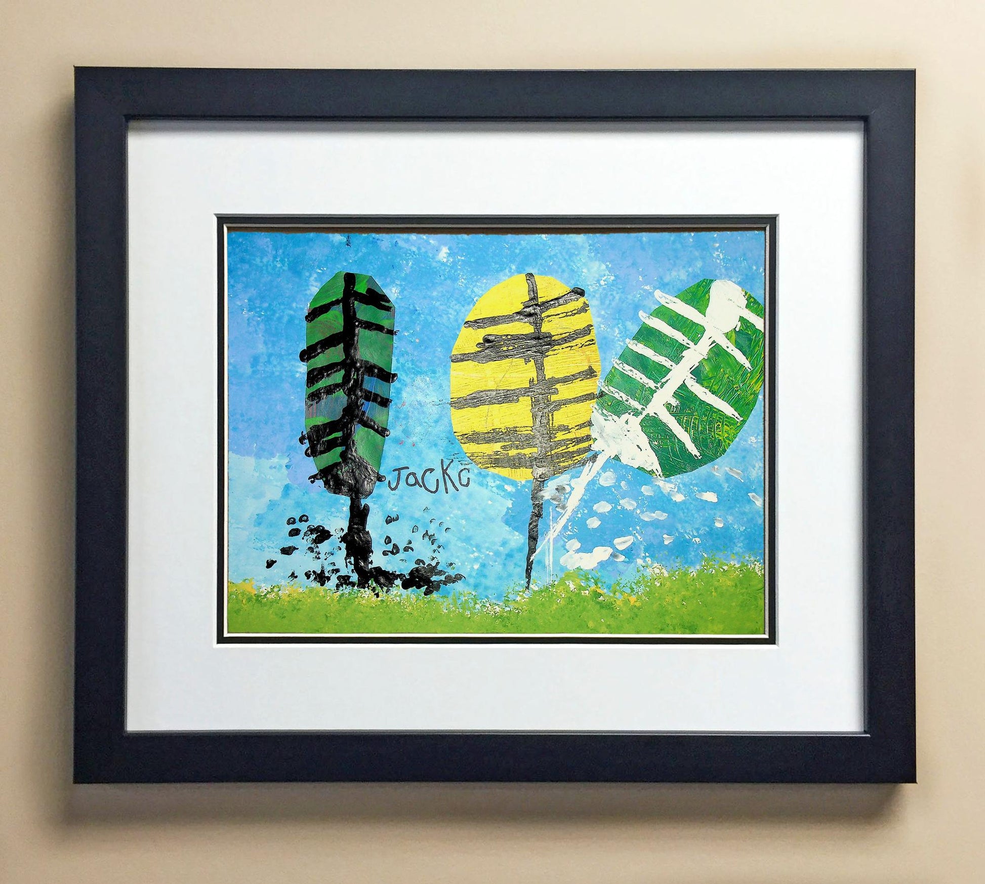 Included with the purchase is the Students Artwork, Frame, double matboard, shatter proof plexiglass, and a ready to hang backerboard with turnbuttons