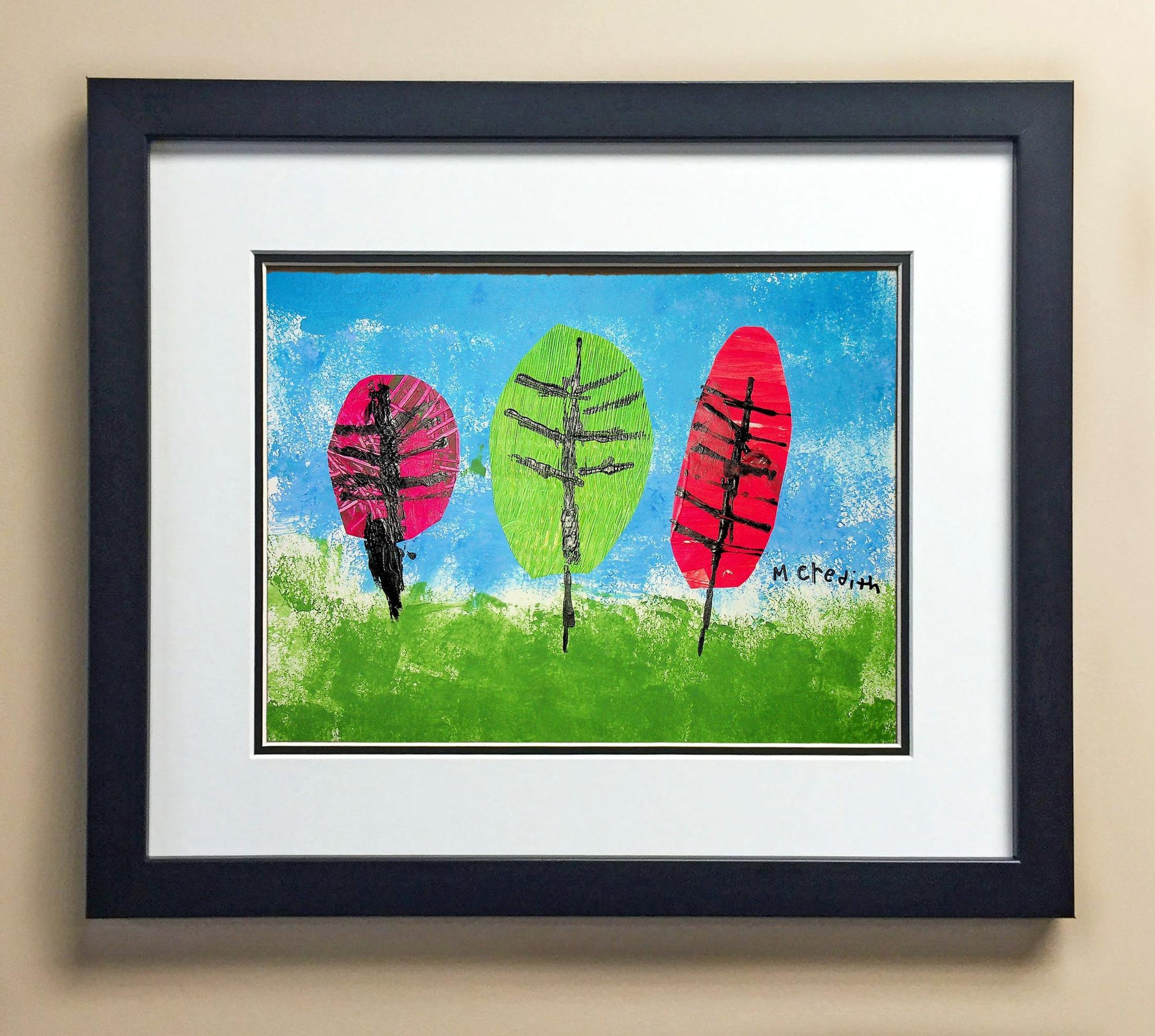 Included with the purchase is the Students Artwork, Frame, double matboard, shatter proof plexiglass, and a ready to hang backerboard with turnbuttons