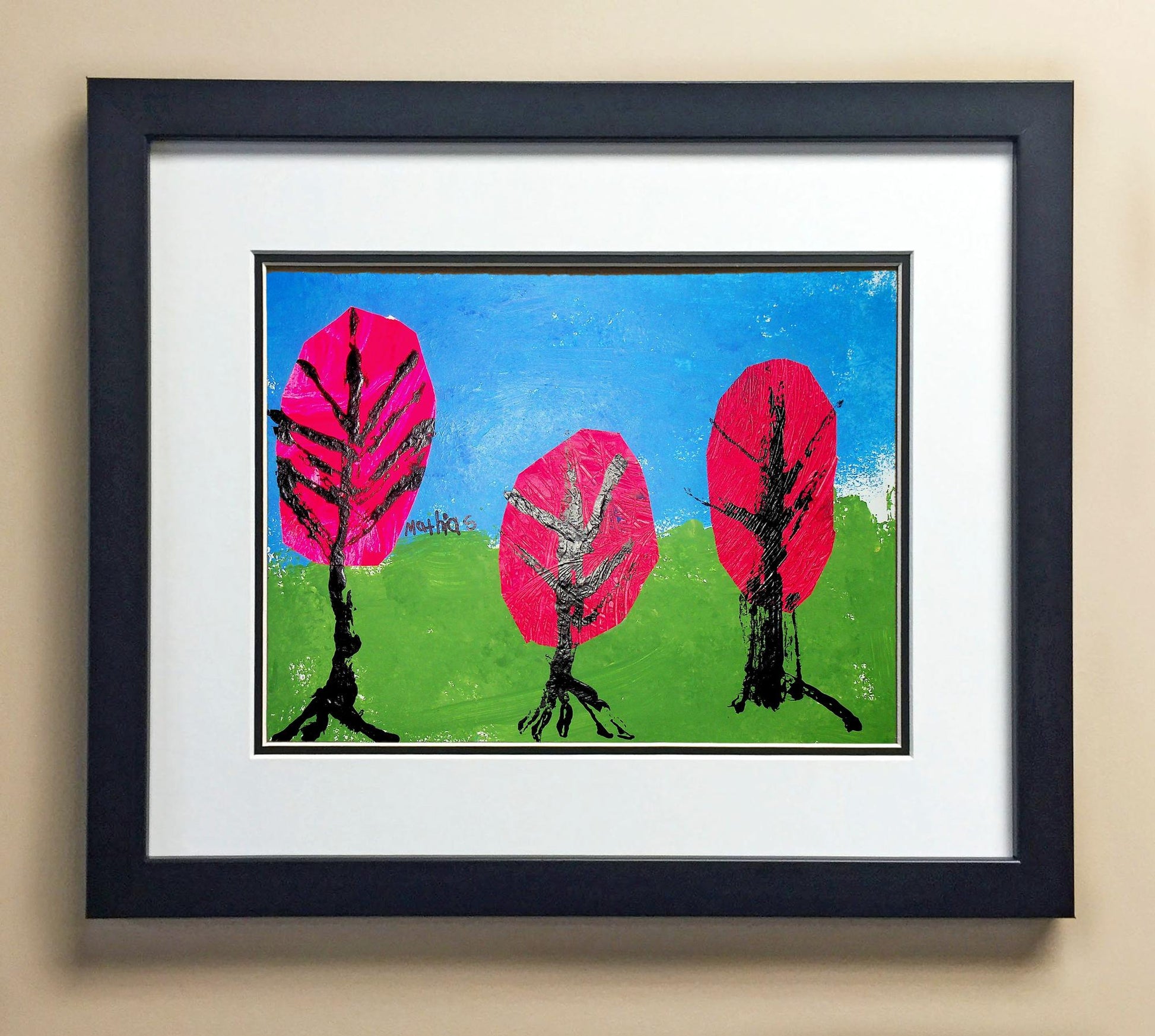 Included with the purchase is the Students Artwork, Frame, double matboard, shatter proof plexiglass, and a ready to hang backerboard with turnbuttons