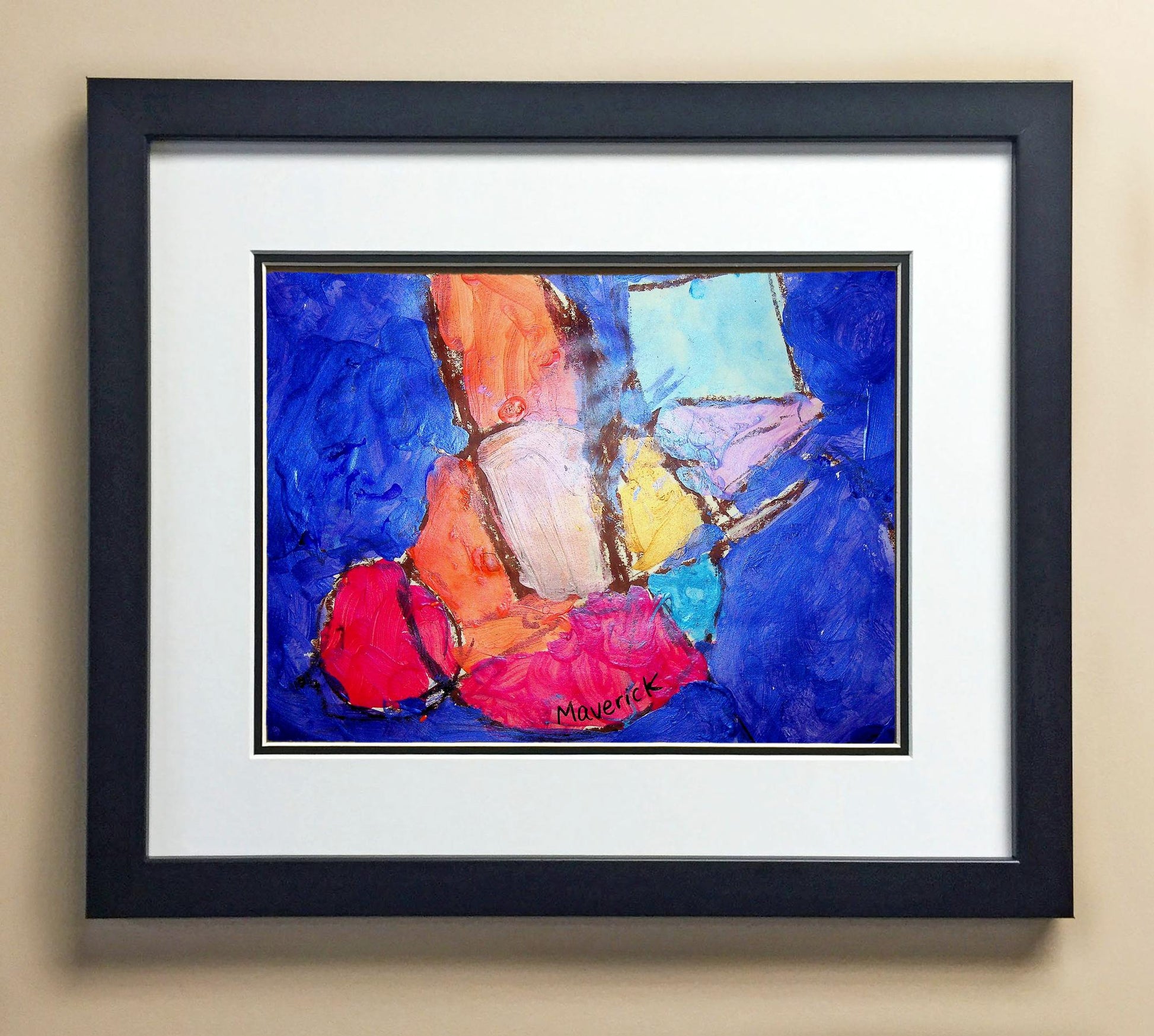 Included with the purchase is the Students Artwork, Frame, double matboard, shatter proof plexiglass, and a ready to hang backerboard with turnbuttons