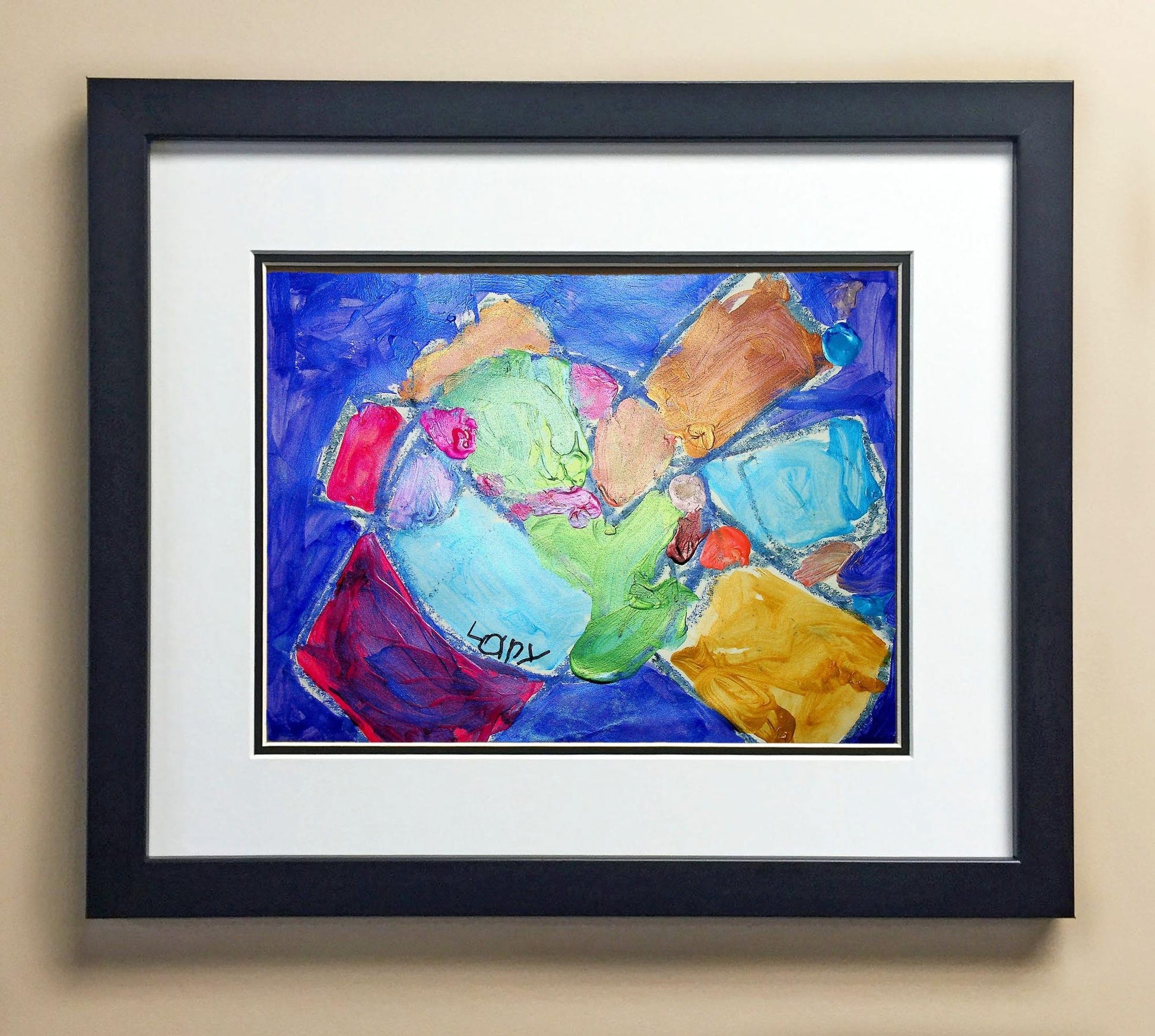 Included with the purchase is the Students Artwork, Frame, double matboard, shatter proof plexiglass, and a ready to hang backerboard with turnbuttons