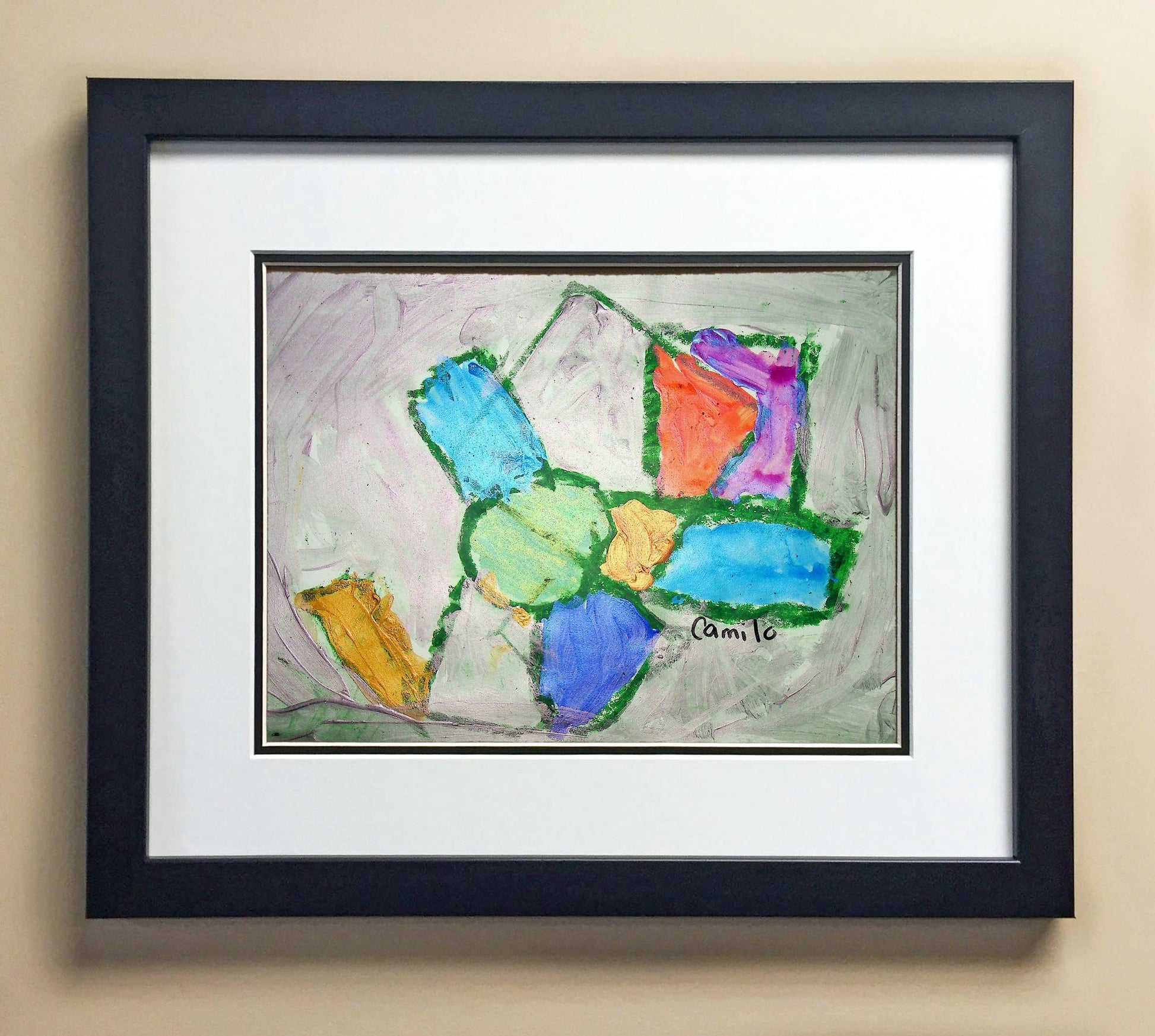 Included with the purchase is the Students Artwork, Frame, double matboard, shatter proof plexiglass, and a ready to hang backerboard with turnbuttons