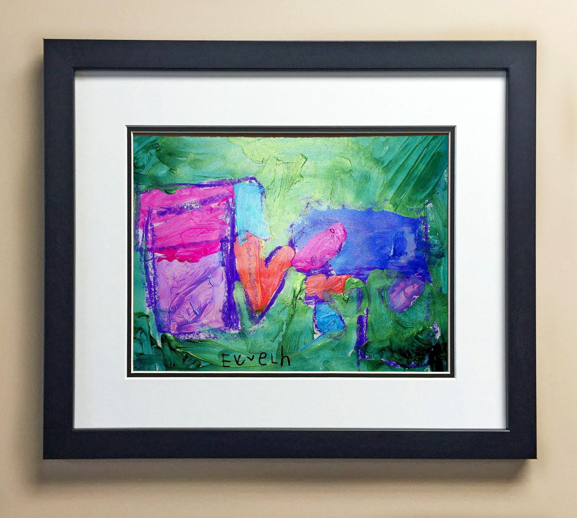 Included with the purchase is the Students Artwork, Frame, double matboard, shatter proof plexiglass, and a ready to hang backerboard with turnbuttons