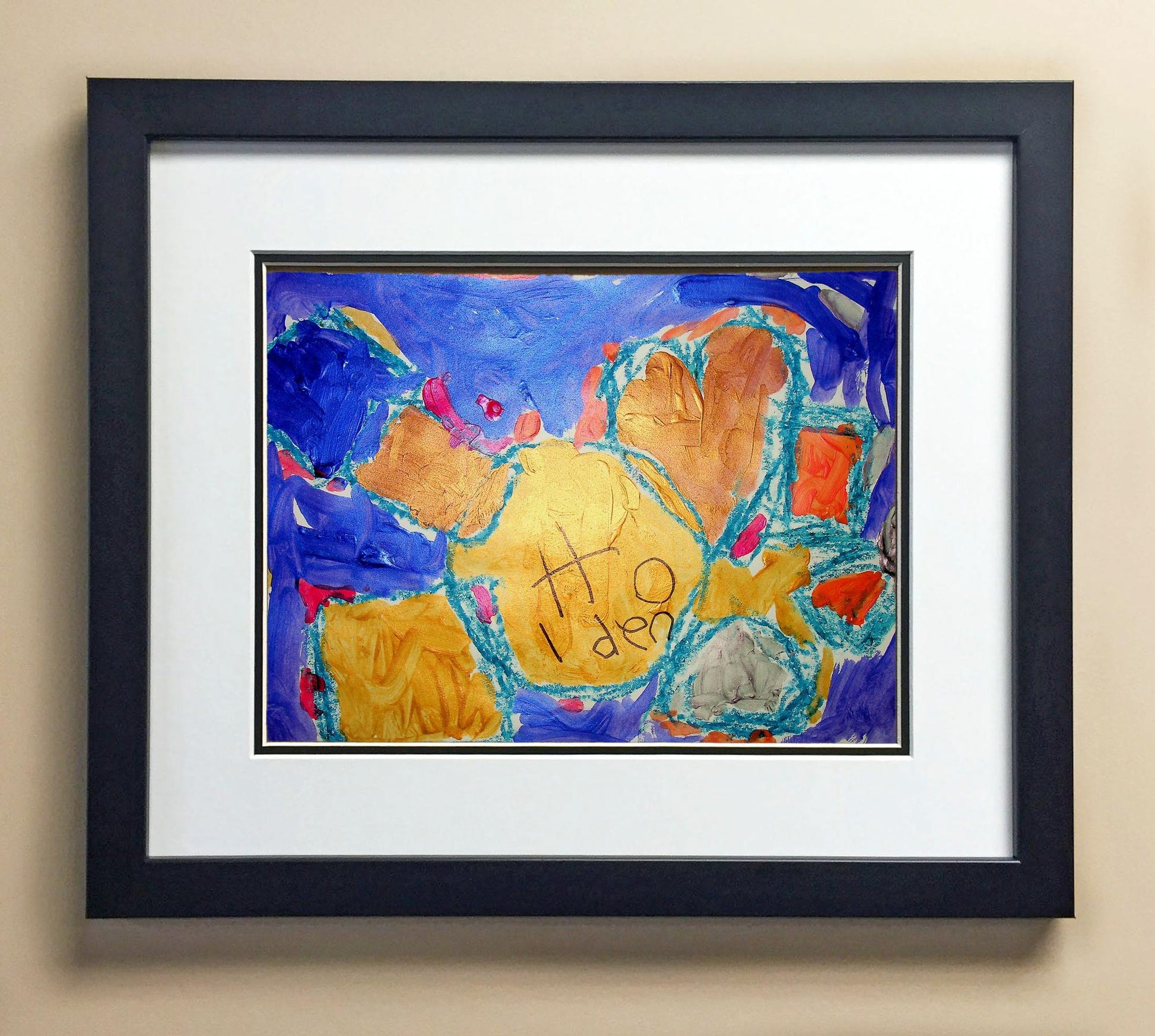 Included with the purchase is the Students Artwork, Frame, double matboard, shatter proof plexiglass, and a ready to hang backerboard with turnbuttons
