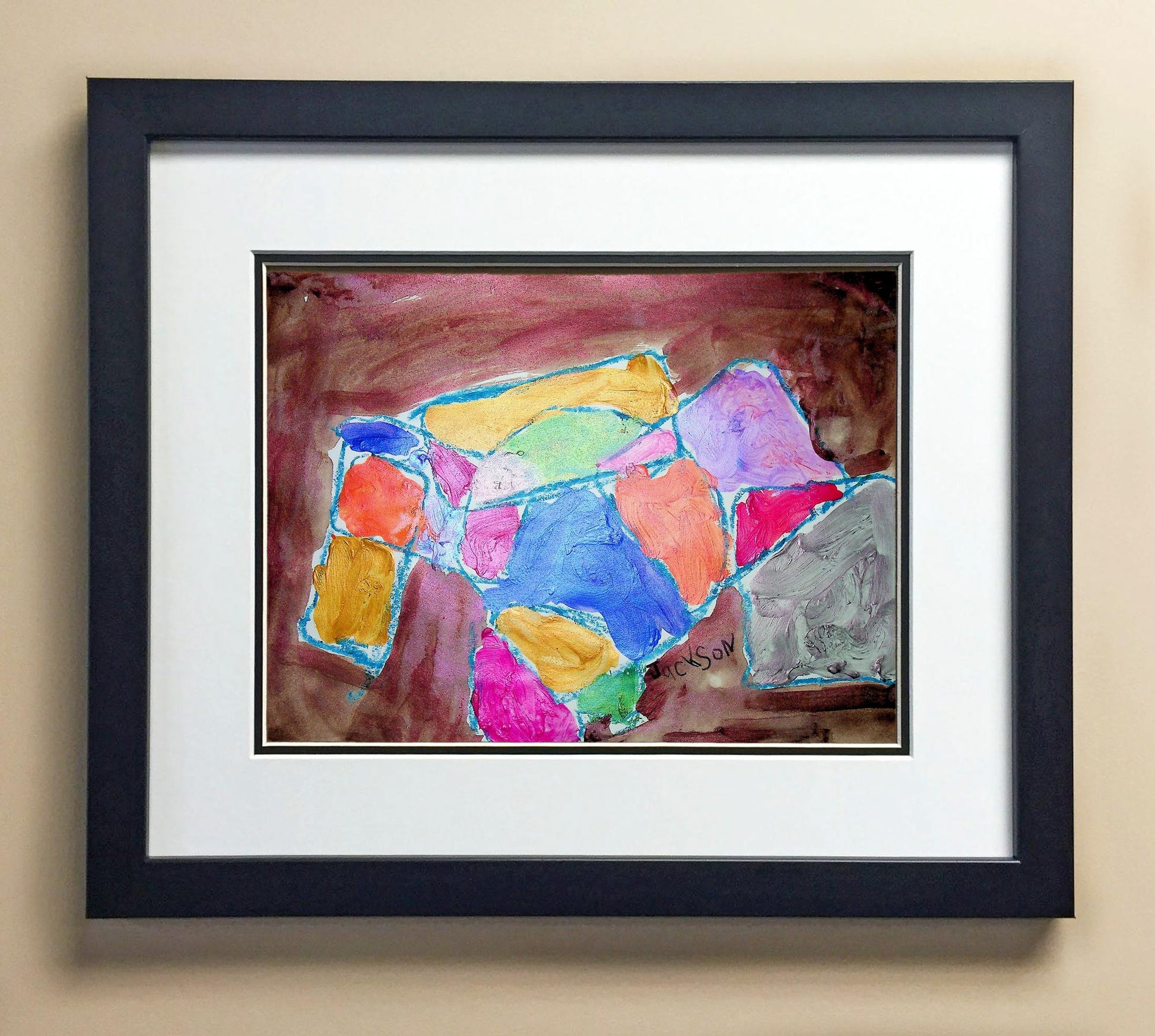 Included with the purchase is the Students Artwork, Frame, double matboard, shatter proof plexiglass, and a ready to hang backerboard with turnbuttons