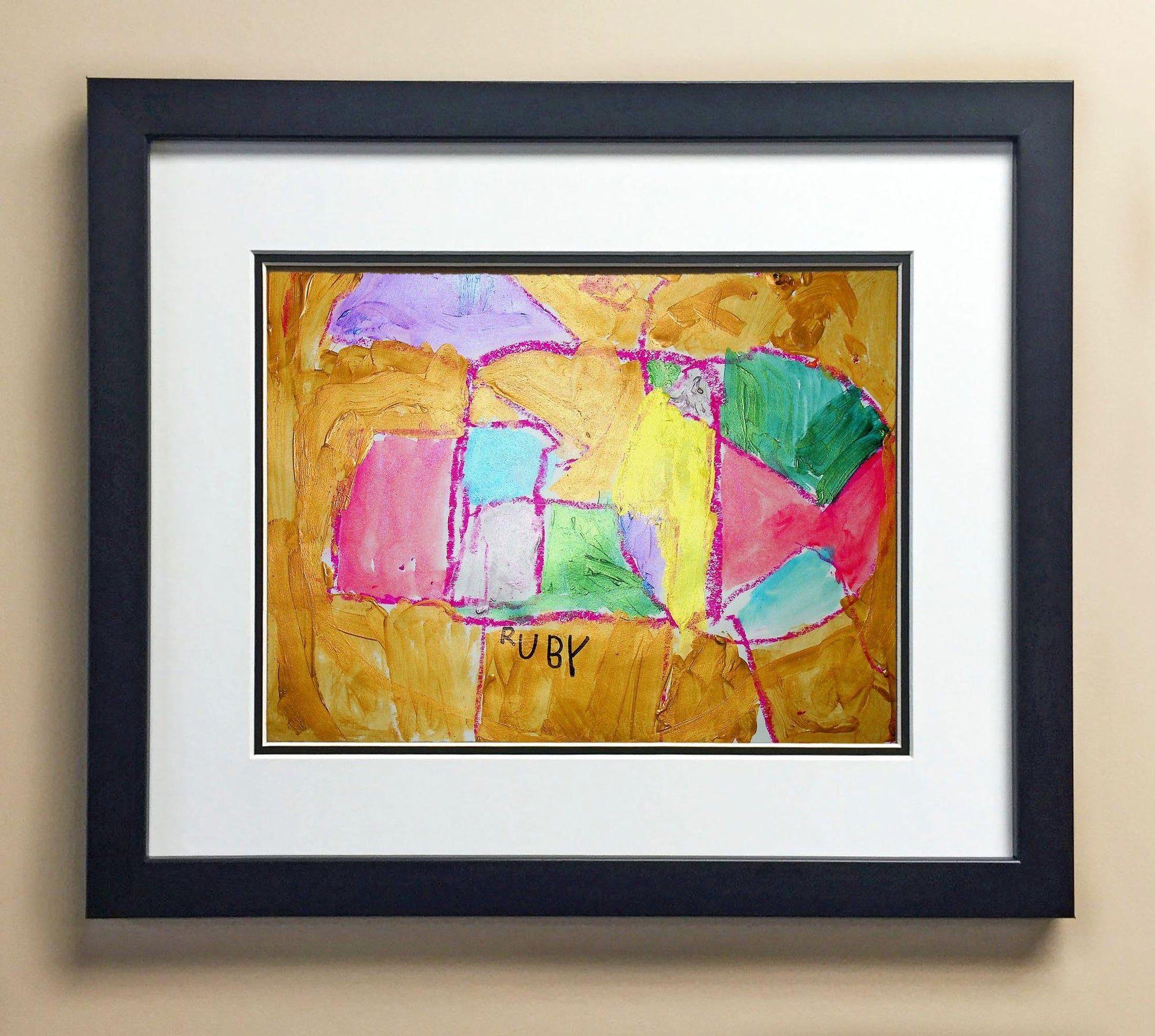Included with the purchase is the Students Artwork, Frame, double matboard, shatter proof plexiglass, and a ready to hang backerboard with turnbuttons