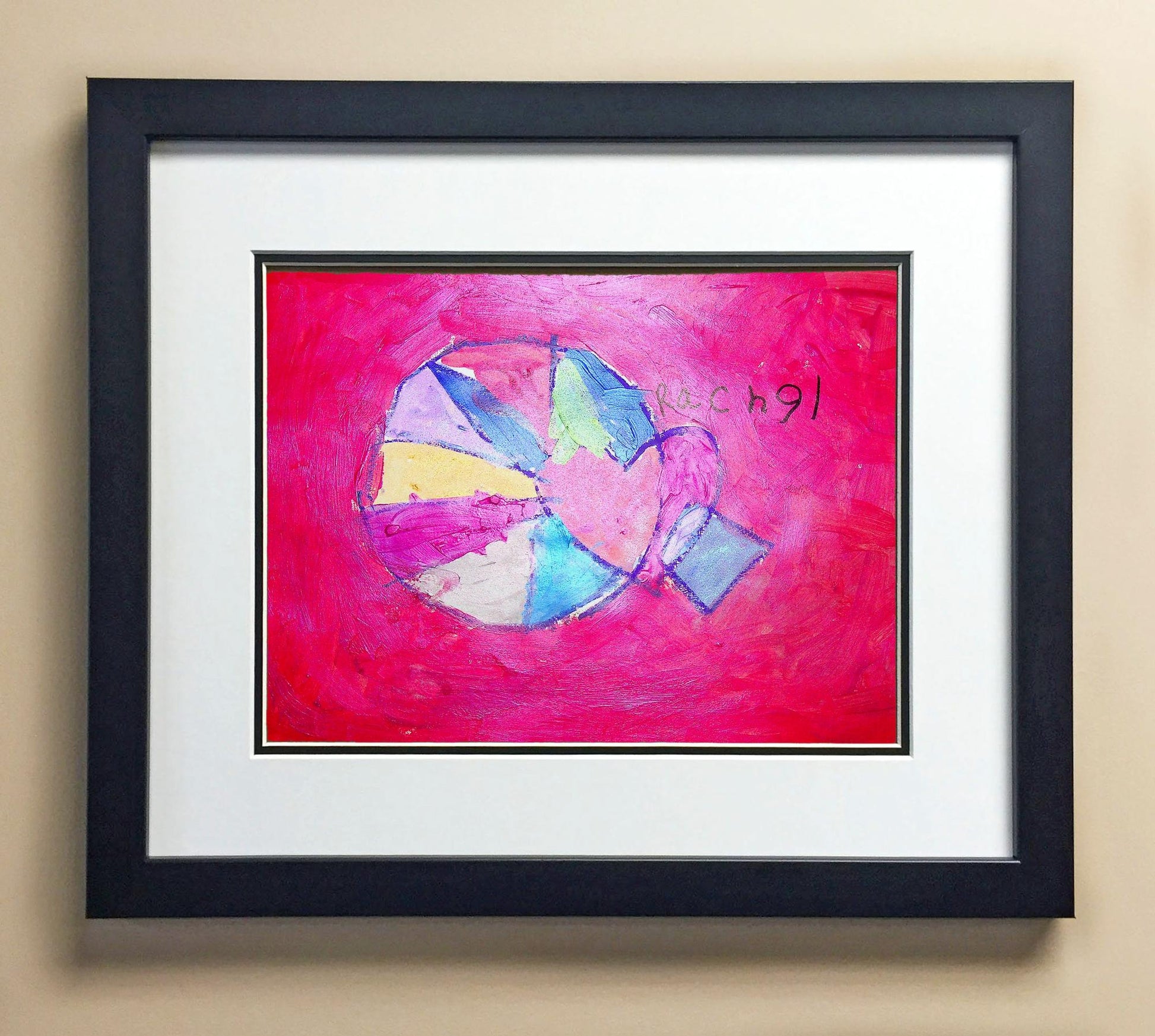 Included with the purchase is the Students Artwork, Frame, double matboard, shatter proof plexiglass, and a ready to hang backerboard with turnbuttons