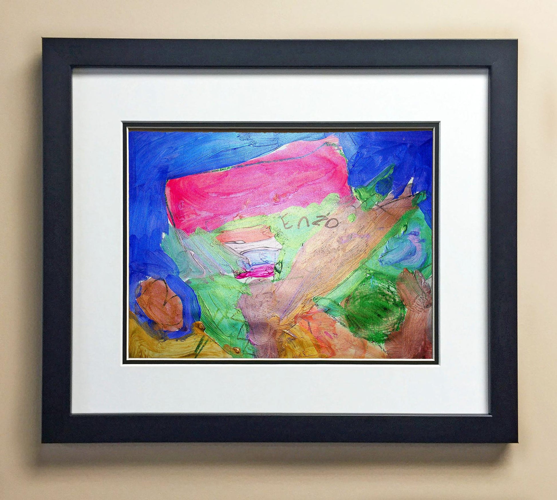 Included with the purchase is the Students Artwork, Frame, double matboard, shatter proof plexiglass, and a ready to hang backerboard with turnbuttons