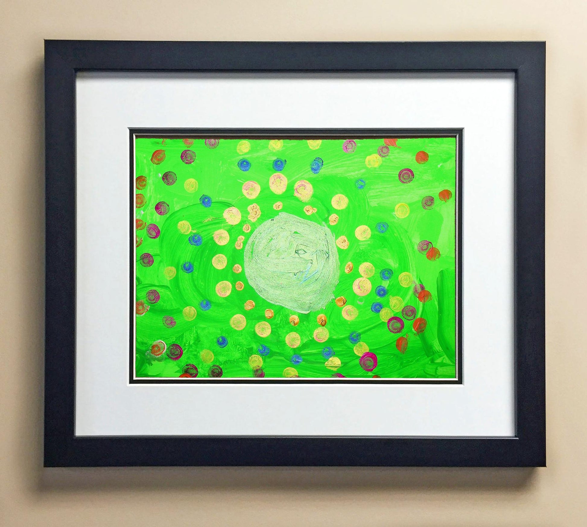 Included with the purchase is the Students Artwork, Frame, double matboard, shatter proof plexiglass, and a ready to hang backerboard with turnbuttons