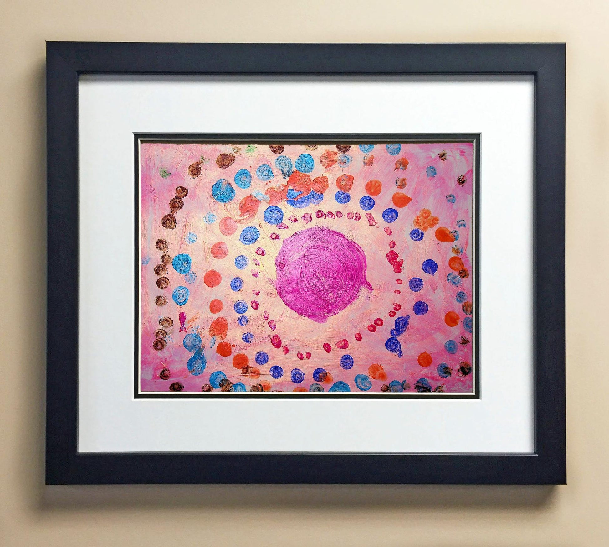 Included with the purchase is the Students Artwork, Frame, double matboard, shatter proof plexiglass, and a ready to hang backerboard with turnbuttons