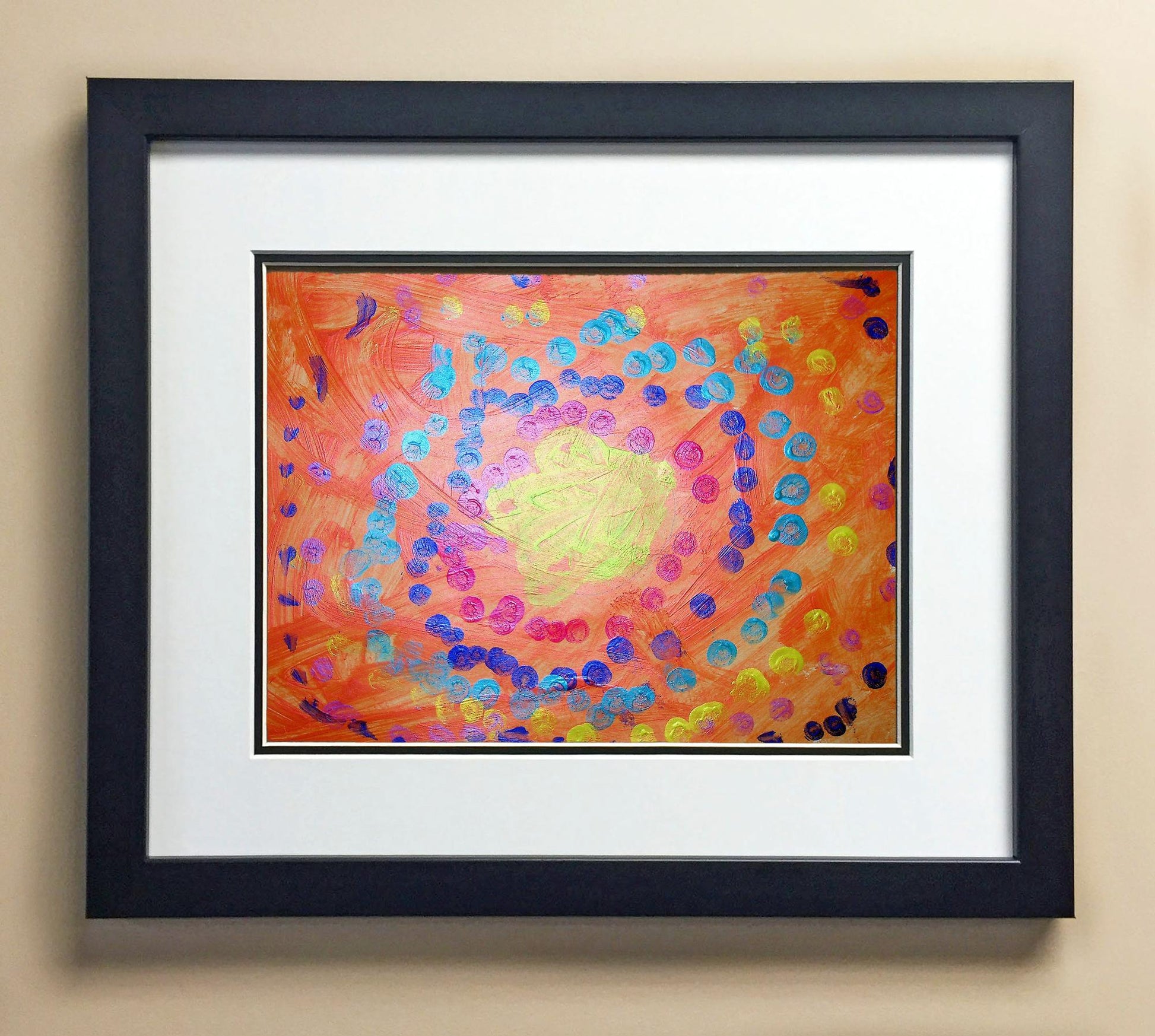 Included with the purchase is the Students Artwork, Frame, double matboard, shatter proof plexiglass, and a ready to hang backerboard with turnbuttons
